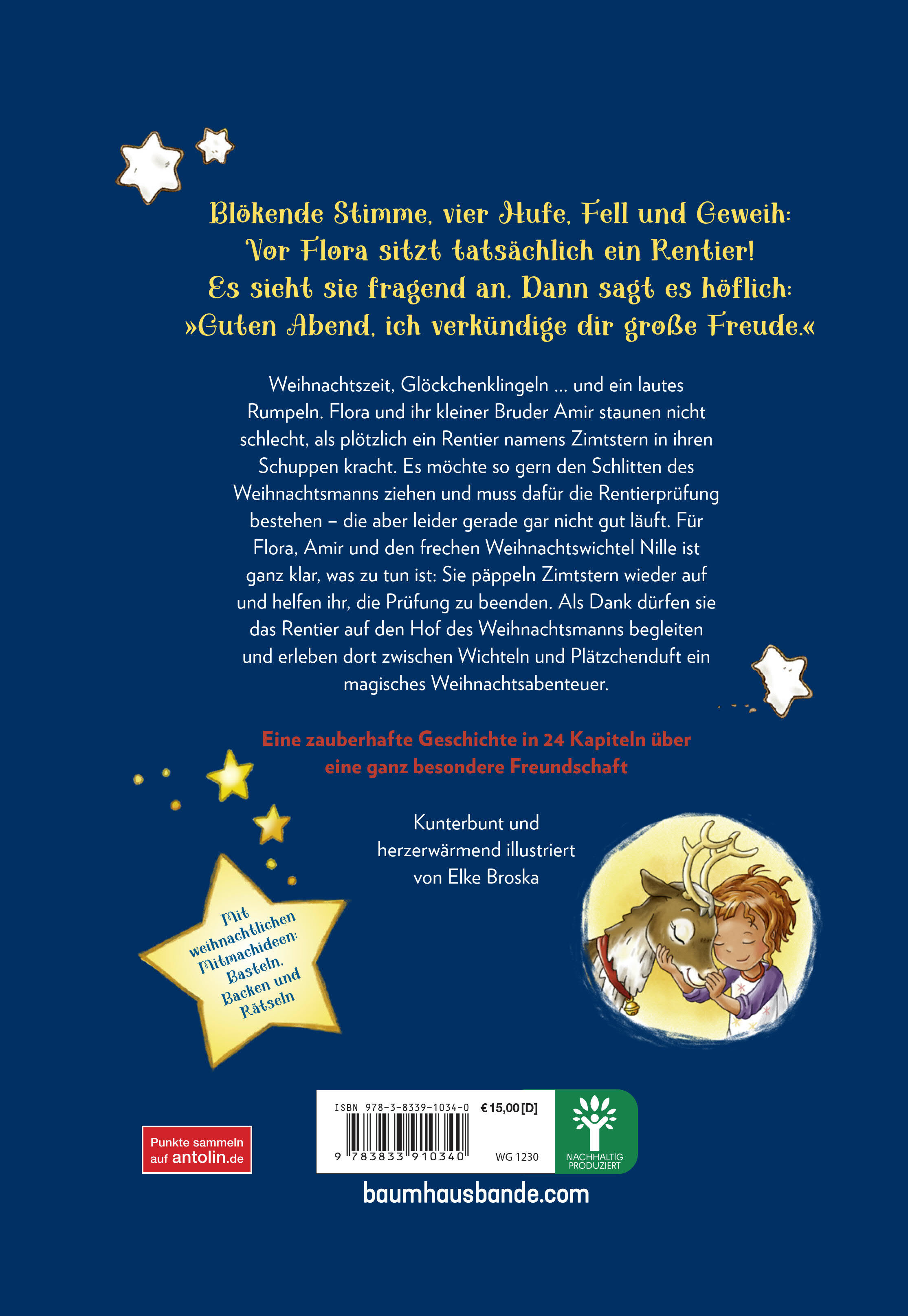 Weihnachtszeit, Glöckchenklingeln ... und ein lautes Rumpeln. Flora und ihr kleiner Bruder Amir staunen nicht schlecht, als plötzlich ein Rentier namens Zimtstern in ihren Schuppen kracht! Es möchte so gern den Schlitten des Weihnachtsmanns ziehen und muss da...