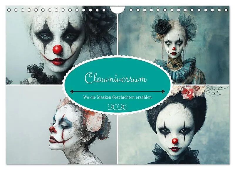 Clowniversum - Wo die Masken Geschichten erzählen (Wandkalender 2026 DIN A4 quer), CALVENDO Monatskalender