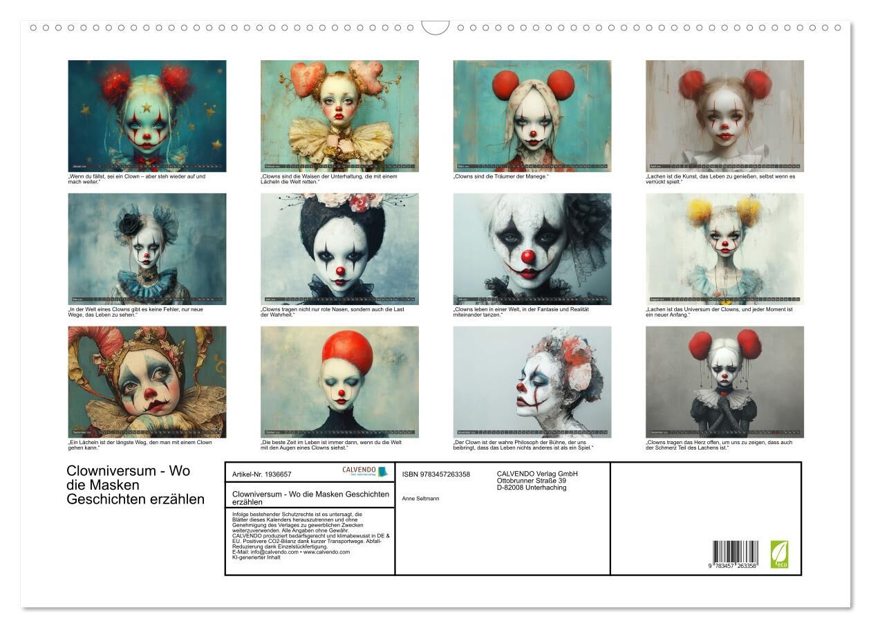 Durch modernste KI-Technologie wurden die Clowns zum Leben erweckt. Erleben Sie die faszinierende Welt der Clowns wie nie zuvor, mit atemberaubenden Bildern. Jeder Monat präsentiert kunstvolle Szenen voller Fantasie. Ob fröhliches Lachen, oder zarte Pantomime,...