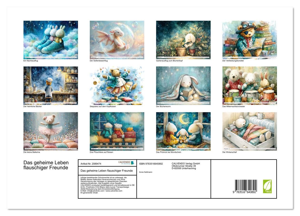 Wenn alle schlafen, oder das Haus verlassen haben, beginnt das Abenteuer! Dieser liebevoll mit KI gestaltete Kinderkalender zeigt auf humorvolle und poetische Weise, was Kuscheltiere so alles treiben. Ob beim heimlichen Lesen unter der Decke oder auf Reisen im...