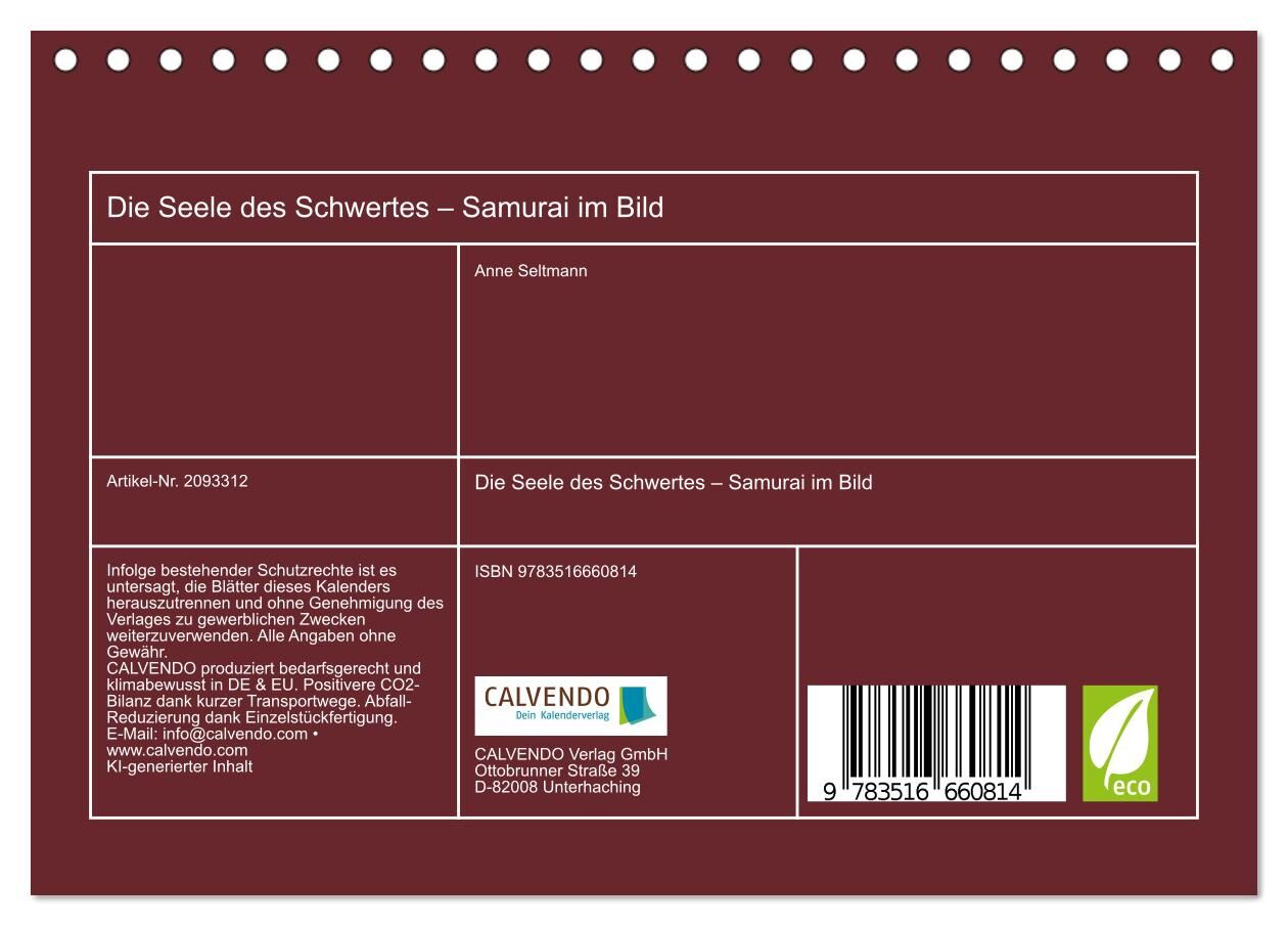 Die Seele des Schwertes Samurai im Bild (Tischkalender 2026 DIN A5 quer), CALVENDO Monatskalender