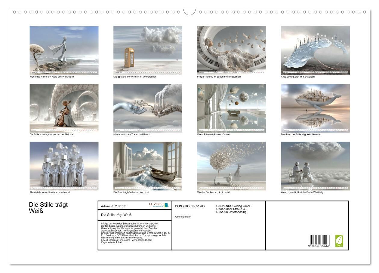 In dieser außergewöhnlichen Bilderserie entfalten sich surreale Traumlandschaften und moderne Portraits alles in Weiß getaucht, als wäre die Farbe selbst zum Träger der Stille geworden. Menschen, Räume, Texturen und Symbole erscheinen entrückt, geheimnisvoll u...