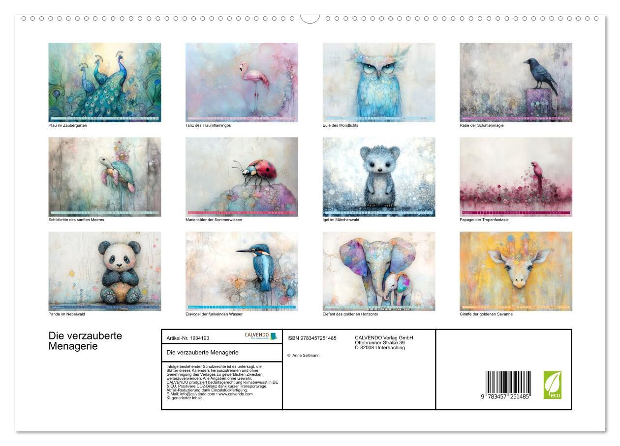 Jedes Kunstwerk wurde von Anne Seltmann mit Zuhilfenahme einer KI erstellt. Tauchen Sie ein in eine zauberhafte Welt voller Fantasie mit dieser einzigartigen Kunstkollektion, die verschiedene Tiere in atemberaubenden Farben und stilvollen Details präsentiert. ...