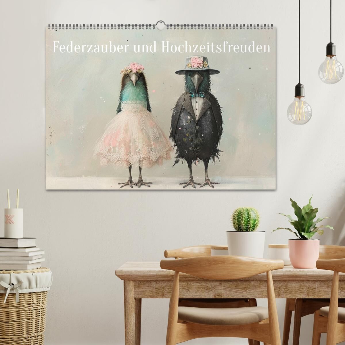 Federzauber und Hochzeitsfreuden (Wandkalender 2027 DIN A2 quer), CALVENDO Monatskalender