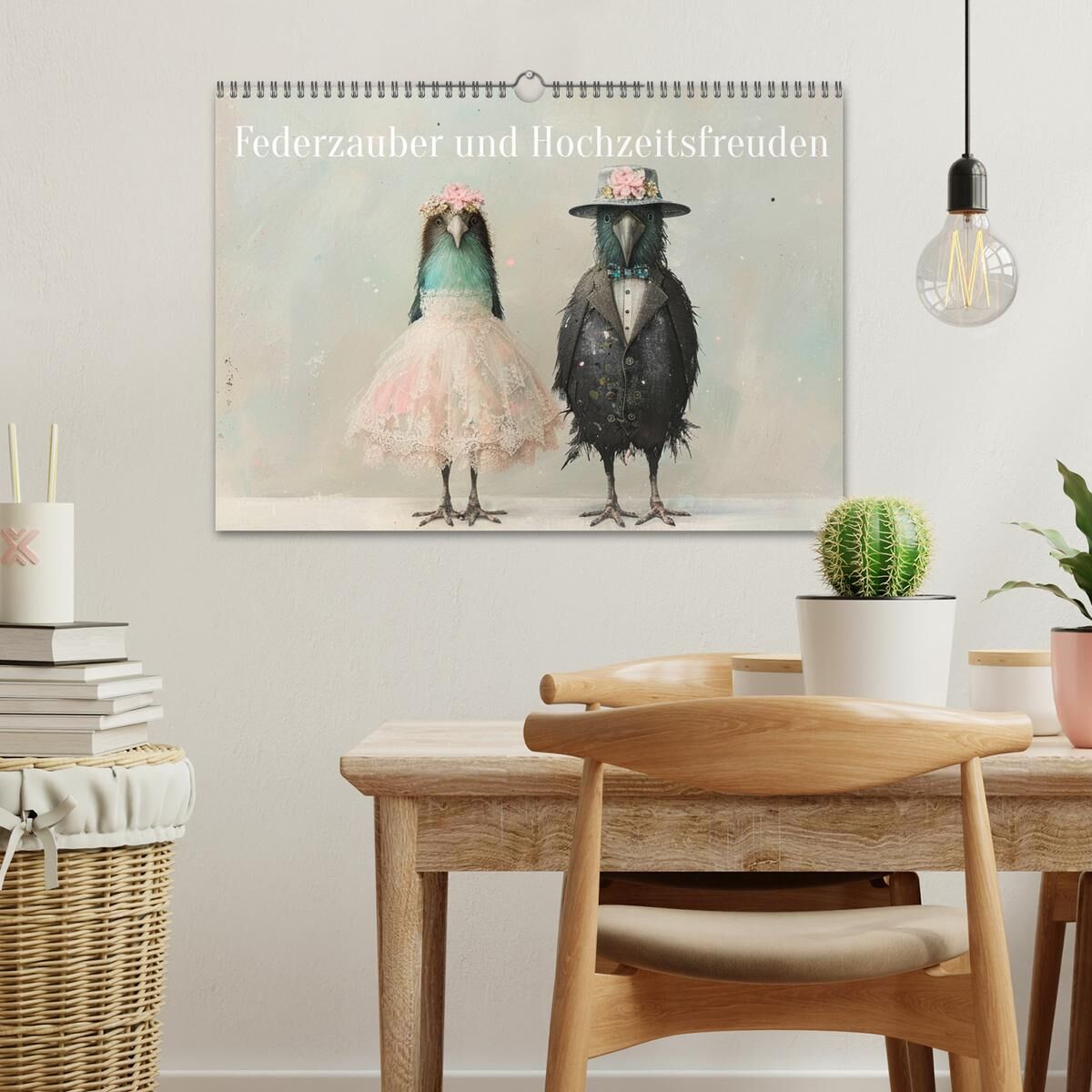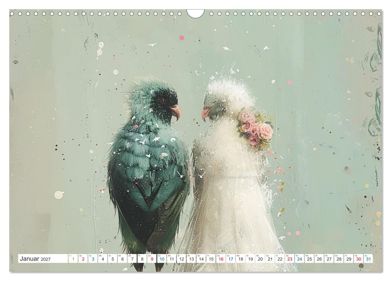 Federzauber und Hochzeitsfreuden (Wandkalender 2027 DIN A3 quer), CALVENDO Monatskalender