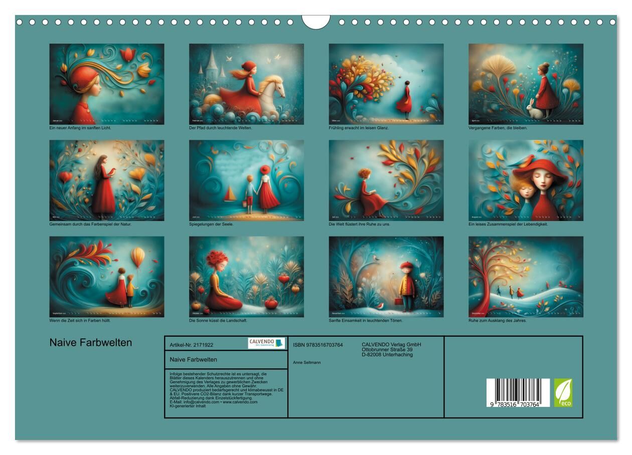 Tauchen Sie ein in die Welt der Naiven Farbwelten, geschaffen von Anne Seltmann. Dieser Kalender zeigt herbstliche, leicht naive Landschaften, in denen Menschen und Natur auf poetische Weise miteinander verschmelzen. Die türkisfarbenen Töne verleihen jedem Bil...