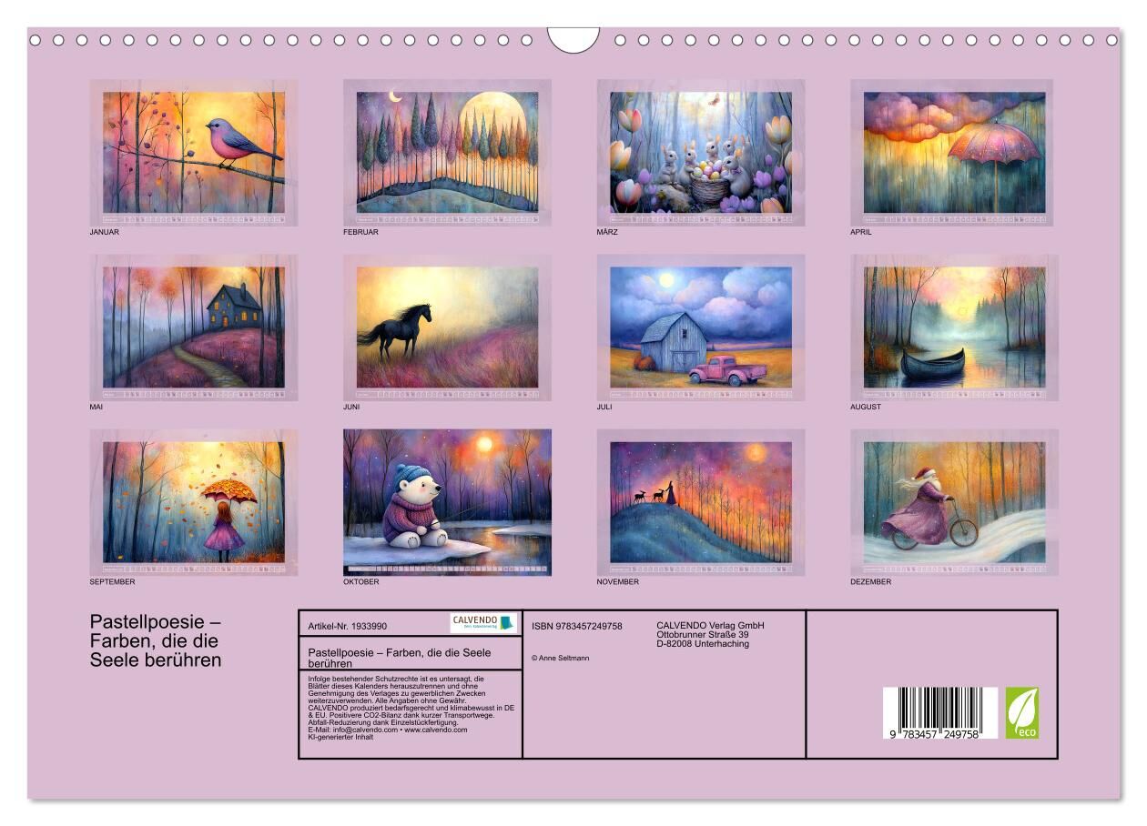 Mit den KI erstellten Bildern tauchen Sie ein in die zarte Welt der Pastellfarben. Jeder Monat wird von einem harmonischen Bild in sanften, beruhigenden Farbtönen begleitet, die eine Atmosphäre von Leichtigkeit und Eleganz schaffen. Ob an der Wand Ihres Büros,...
