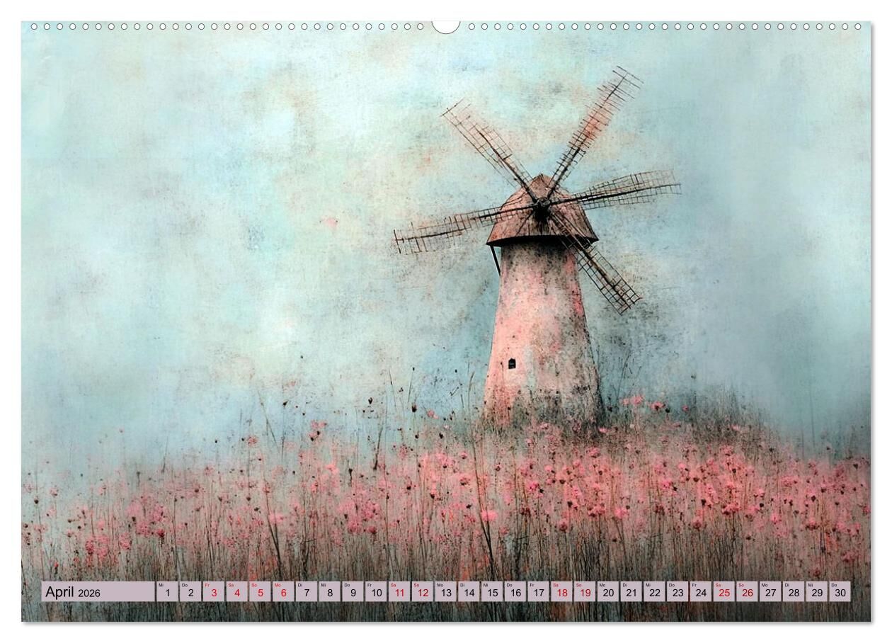 Windgeflüster-Mühlenimpressionen (hochwertiger Premium Wandkalender 2026 DIN A2 quer), Kunstdruck in Hochglanz