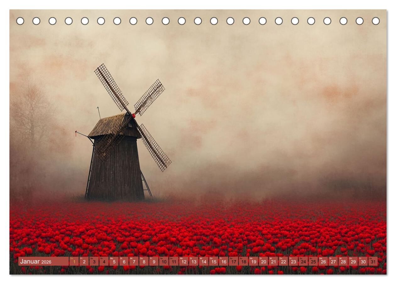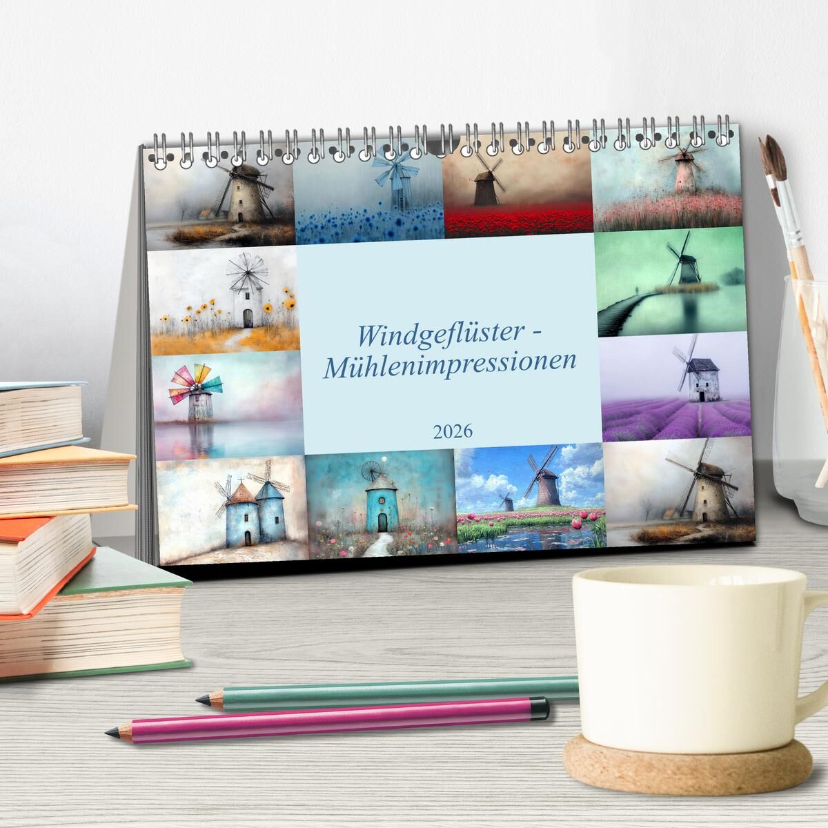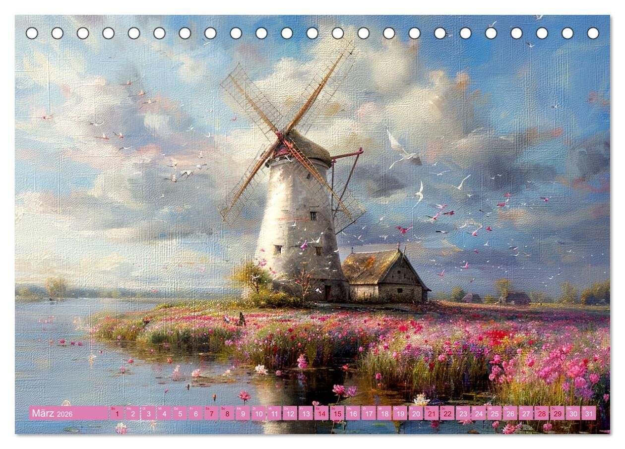 Windgeflüster-Mühlenimpressionen (Tischkalender 2026 DIN A5 quer), CALVENDO Monatskalender