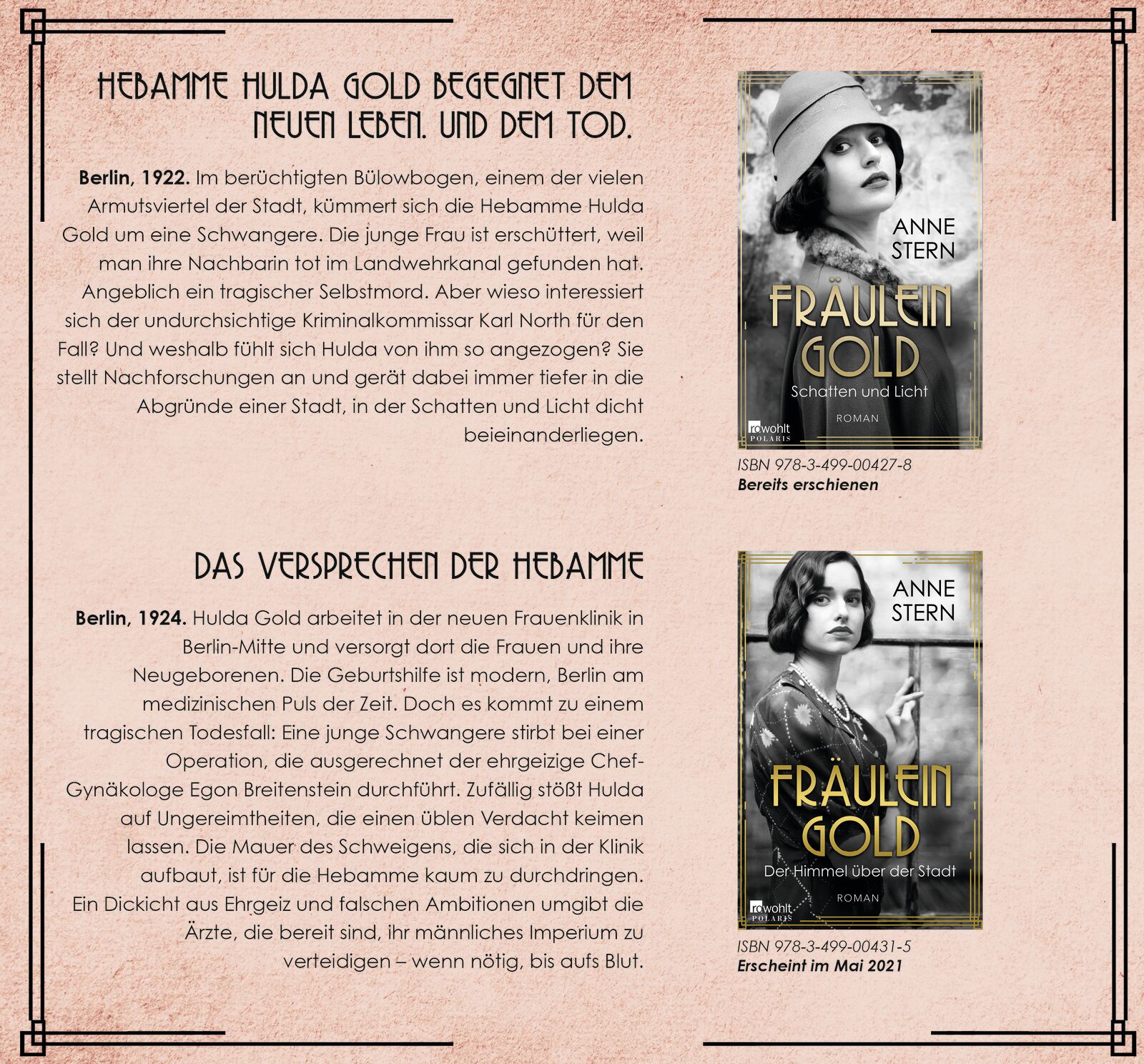 Band 2 der gefeierten Bestsellerreihe um die Hebamme Hulda Gold, die im Berlin der 1920er Jahre in rätselhafte Todesfälle verstrickt wird. 1923: Die Berliner Hebamme Hulda Gold wird zu einer Geburt ins Scheunenviertel nach Mitte gerufen. Obwohl die judische F...
