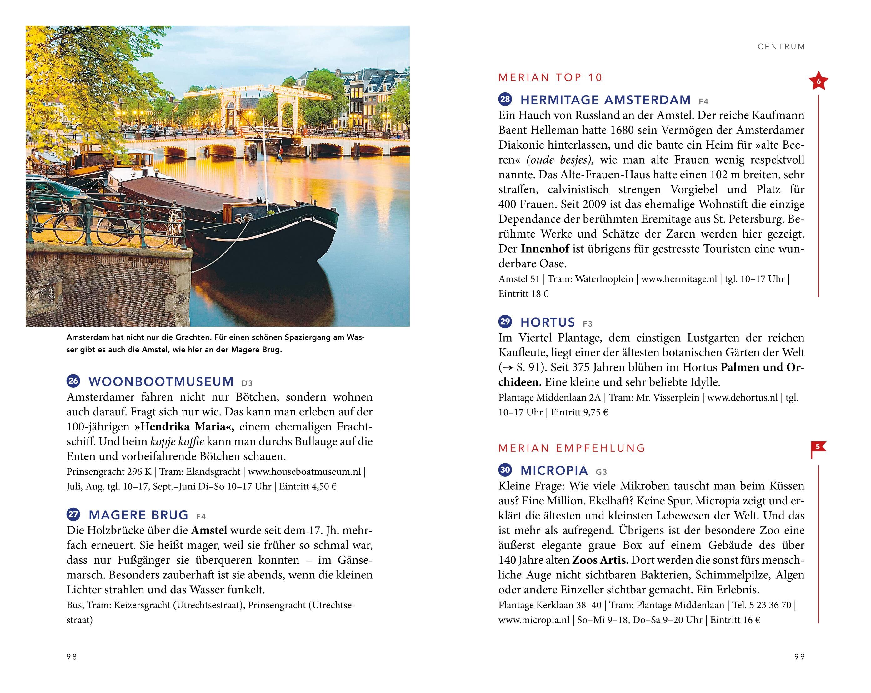 Mit dem Rad entlang der Grachten, übernachten in einem der alten Brückenhäuschen, große Kunst im Reichsmuseum, Bitterballen zum abendlichen Bier: Mit MERIAN wird Ihre Zeit in Amsterdam unvergesslich. MERIAN zeigt die Stadt in all ihrem Reichtum: die charakter...