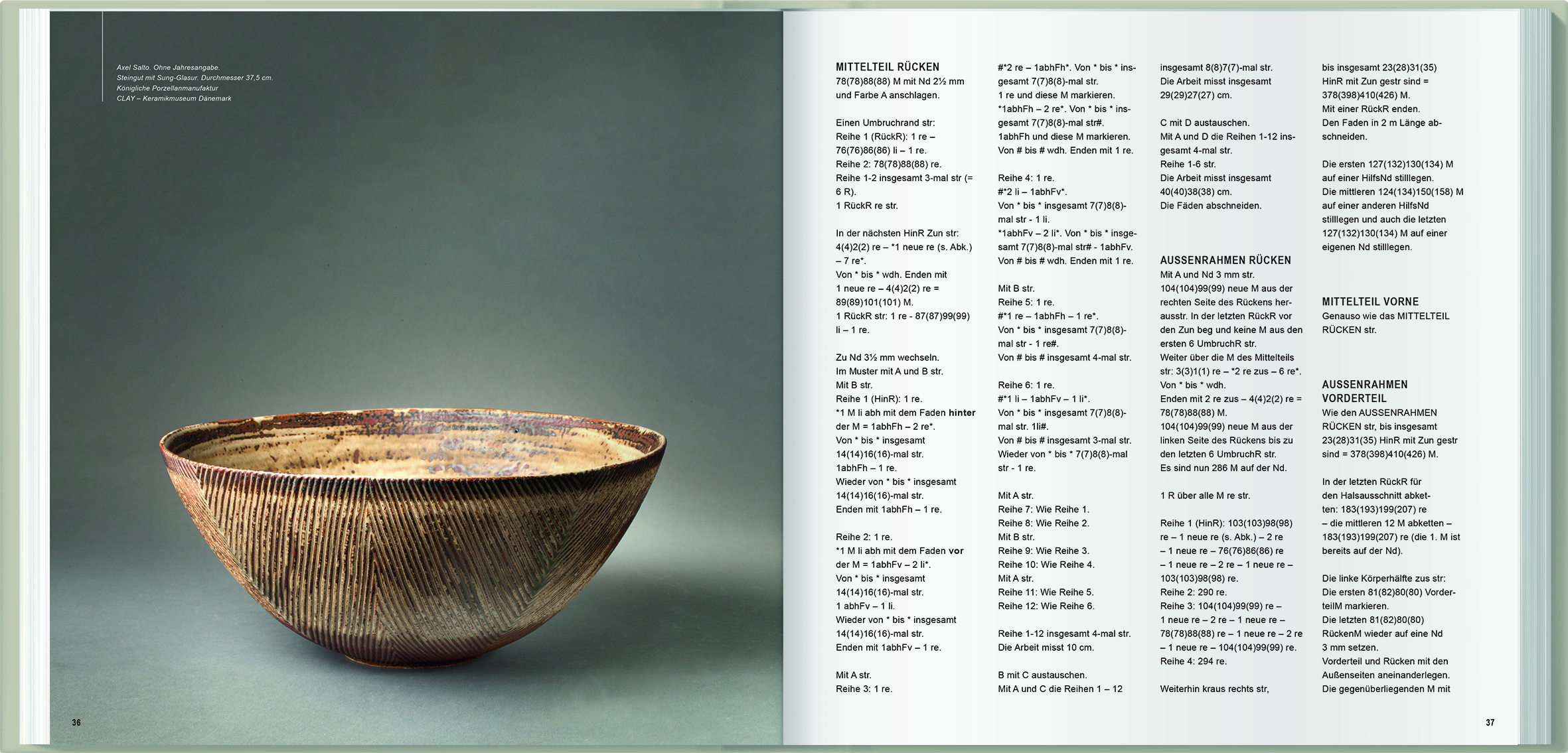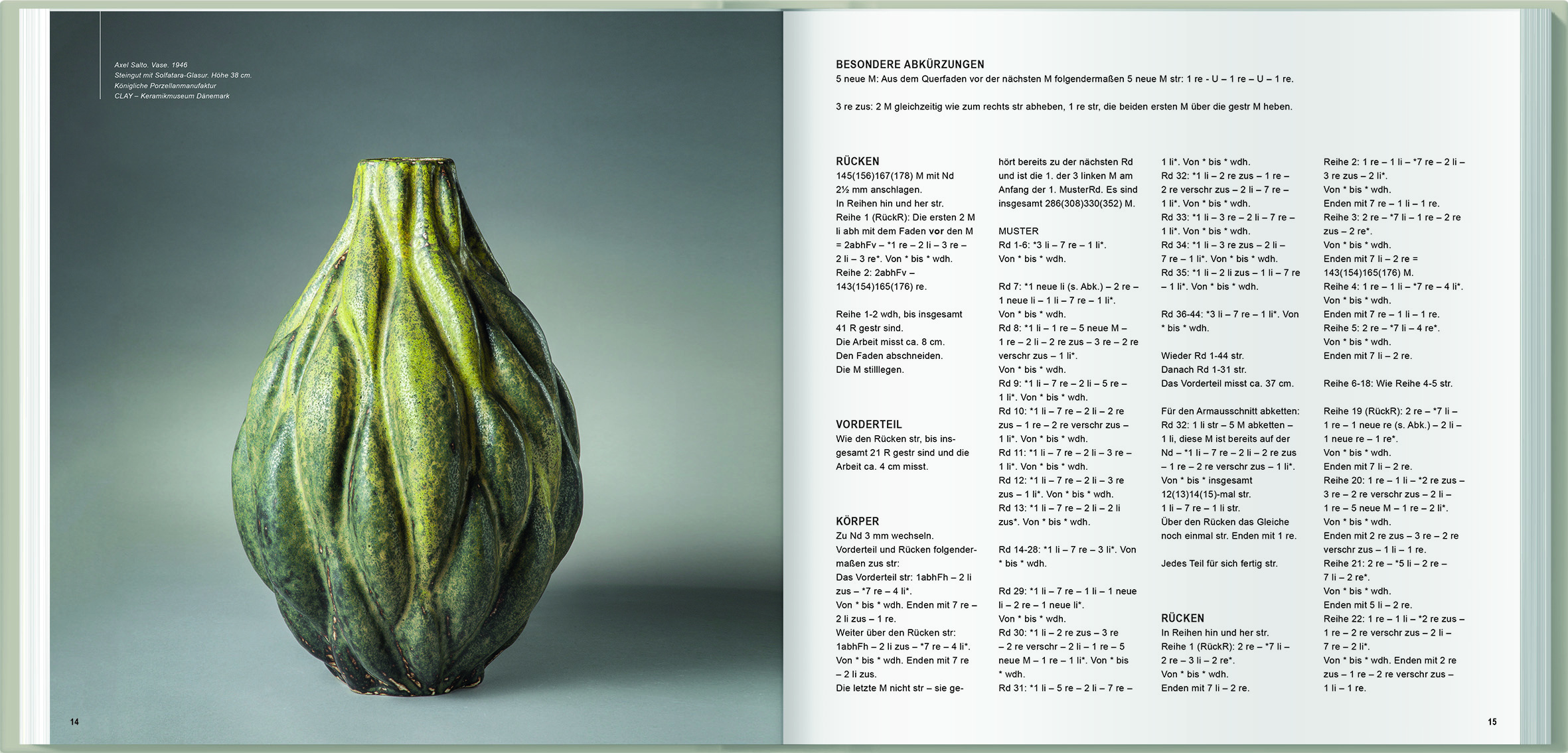 Ausgezeichnete Strickkunst trifft auf edle Keramik-Kunst Der dänische Keramik-Künstler Axel Salto schuf Vasen und Schalen, deren Design an Zwiebeln, Blätter oder Kastanien erinnert. Davon ließ sich Annette Danielsen für ihre Damen-Jacken und Strickpullover in...