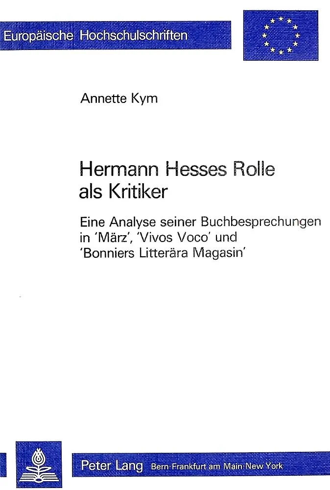 Die Studie verfolgt Hesses Rolle als Kritiker zwischen 1907 und 1936 anhand von Besprechungen in den drei genannten Zeitschriften. Das Rezensionsmaterial wurde mit Hilfe eines Computerprogramms auf verschiedene Punkte hin untersucht: Veränderungen in Hesses Vo...