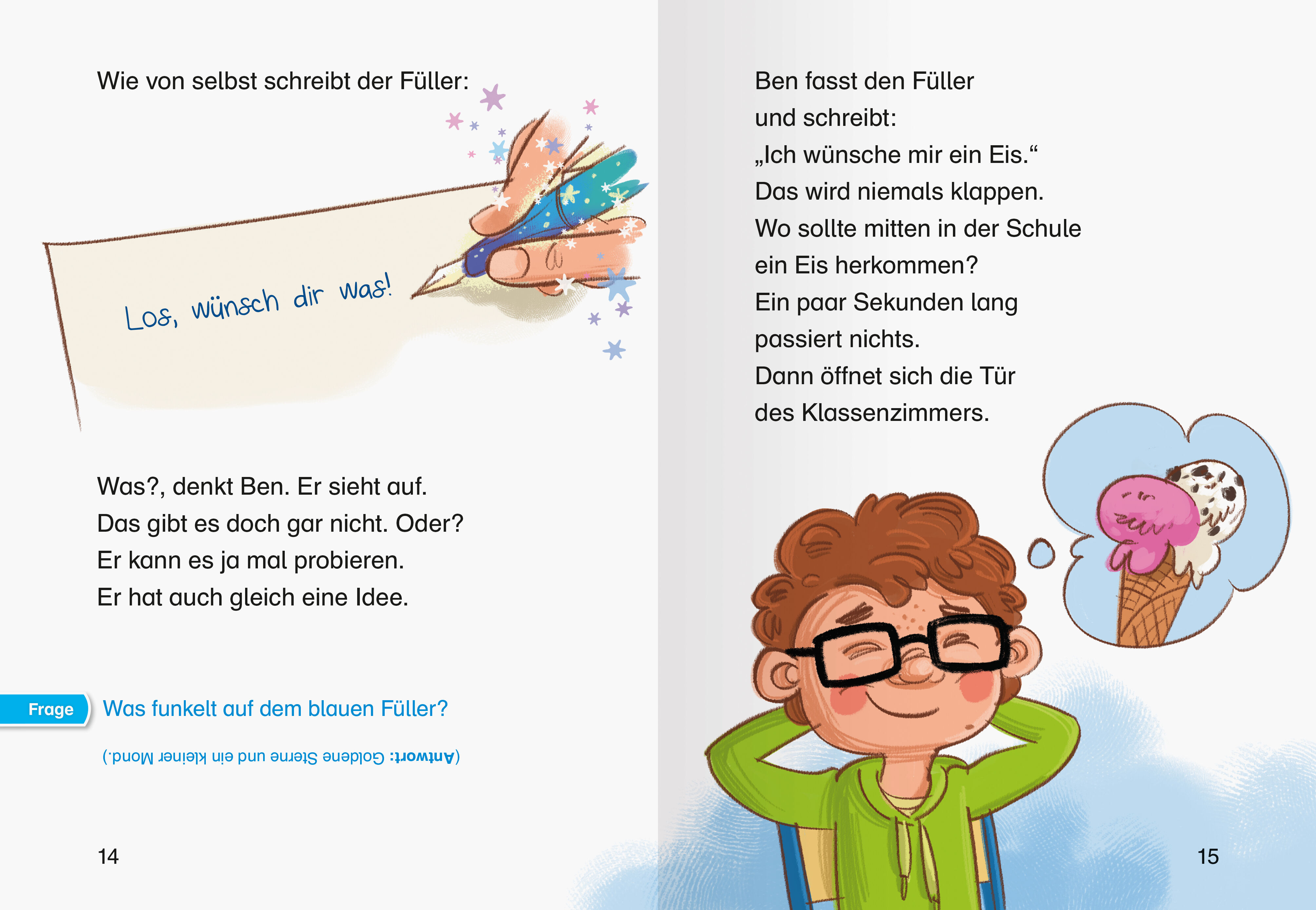 Lesen lernen wie im Flug! An diesem Schultag ist alles anders: In seinem Federmäppchen findet Ben einen verzauberten Füller. Wenn Ben mit diesem Füller einen Wunsch aufschreibt, geht er in Erfüllung. Da ist einiges los im Klassenzimmer! Alle Schülerinnen und S...