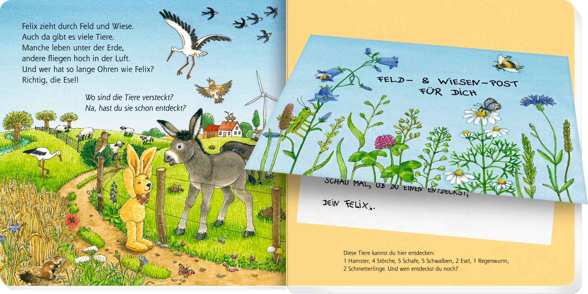 Generationen sind mit Felix aufgewachsen. Jetzt zeigt der reiselustige Kuschelhase den Kleinsten die Welt der Tiere! Hinter großen Klappen verbergen sich Briefe, in denen Felix von großen und kleinen Tieren in unserer Umgebung erzählt, von denen unzählige auf...