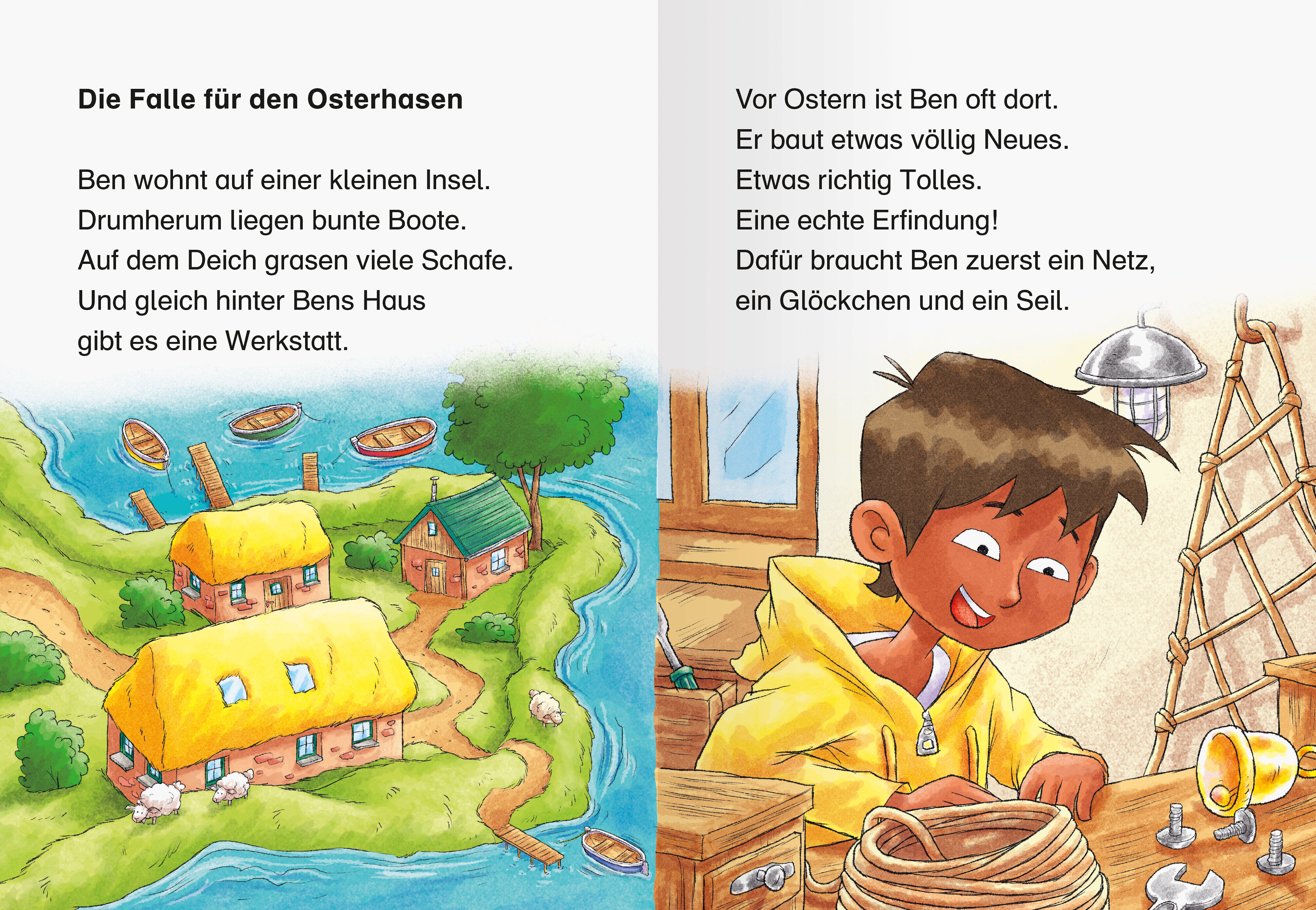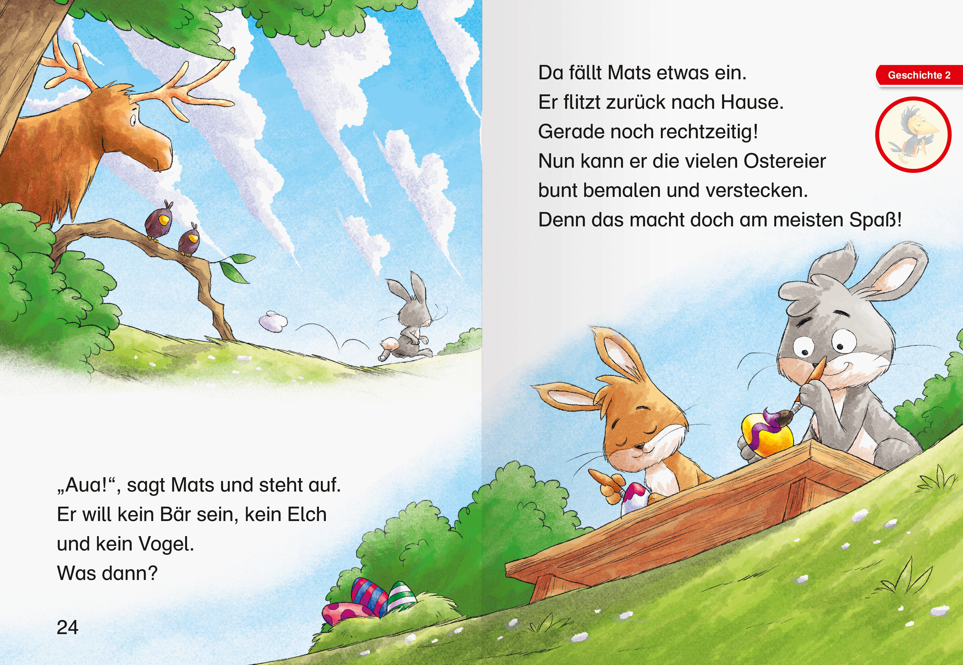 Lesen lernen wie im Flug! Ob der Osterhase schon da war? Emilia und Matteo bekommen bei der Eier-Suche Hilfe von ihrem Hund. Osterhase Mats will nicht mehr Osterhase sein. Ben baut eine Osterhasen-Falle und der kleine Affe Fips sucht zu Ostern ganz besondere E...