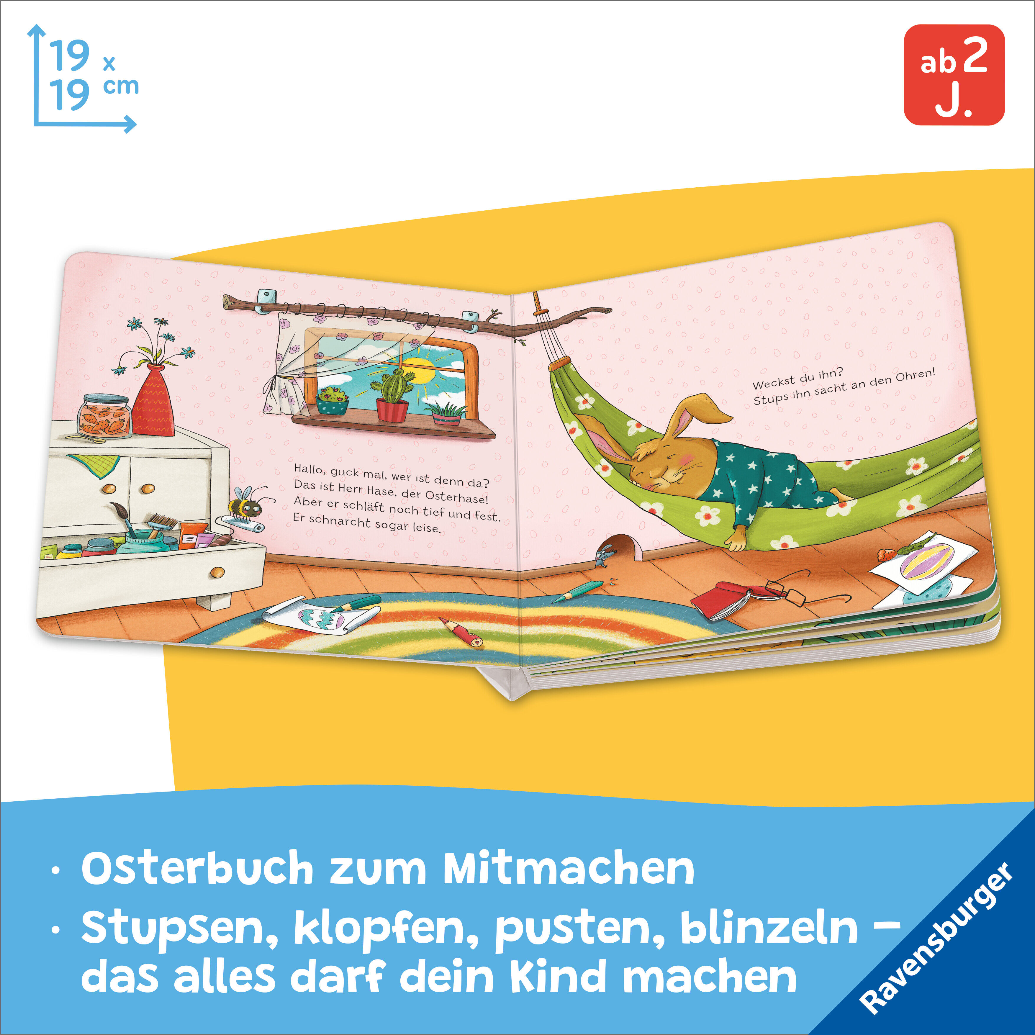 Fröhliche Ostern mit Herrn Hase! Oh, der Osterhase schläft noch. Schnell, stups ihn auf die Nase damit er aufwacht. Es ist noch so viel zu tun vor Ostern: Eier sammeln, anmalen und verstecken. Natürlich geht das alles nur mit Hilfe. Überall dürfen Kinder selbs...