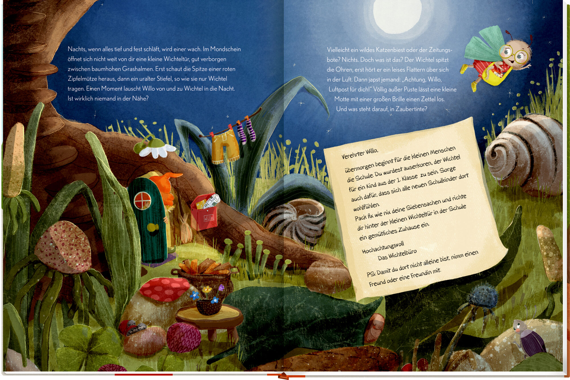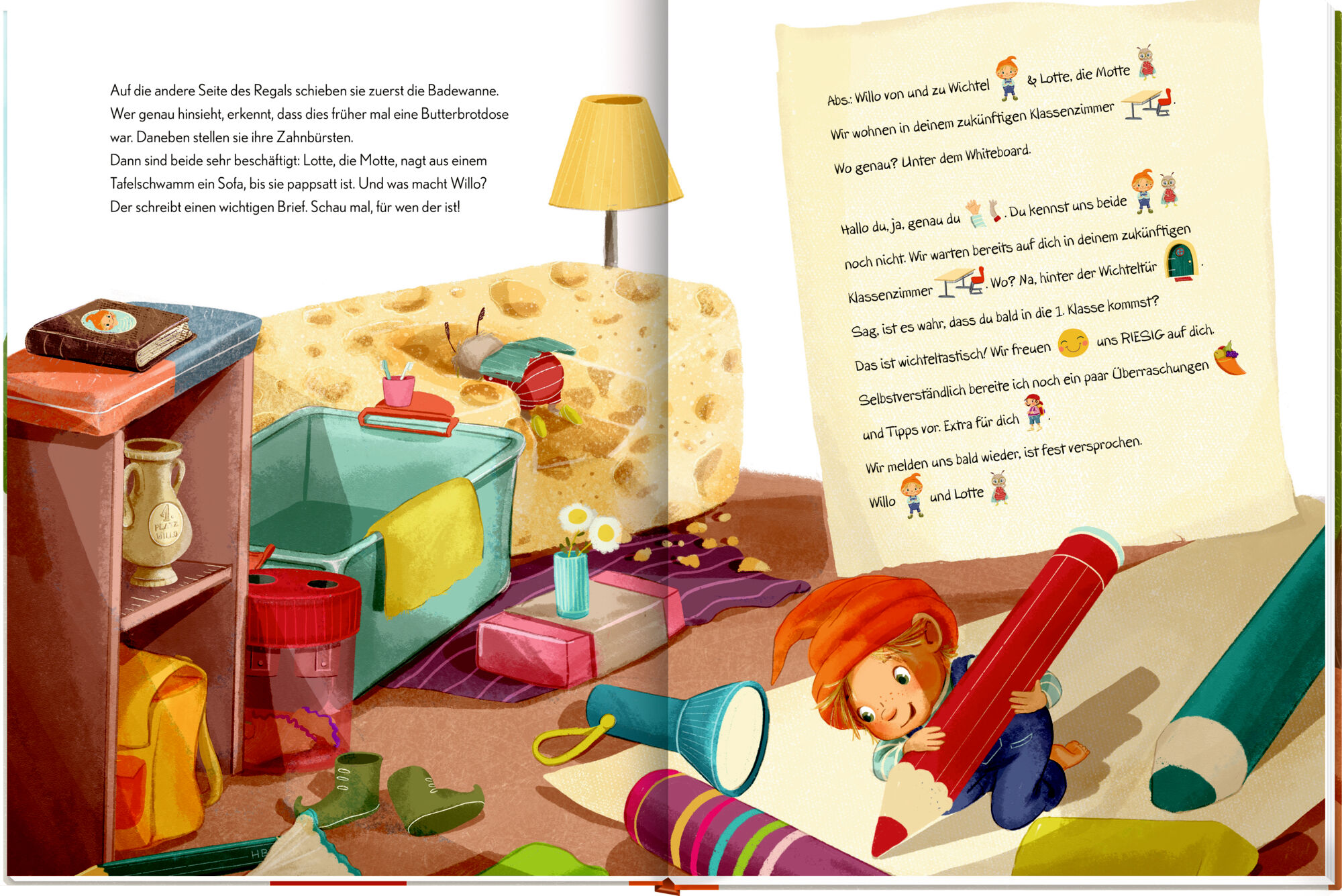 Ein Wichtel für den Schulanfang! Mit Wichtelpuppe als Glücksbringer Mutmachende Geschichte zum Schulanfang Entdeckungsreise durch die Grundschule Detailreiche Illustrationen von Anne Grobe Willo von und zu Wichtel zieht mit seiner Freundin Lotte, der Motte, i...
