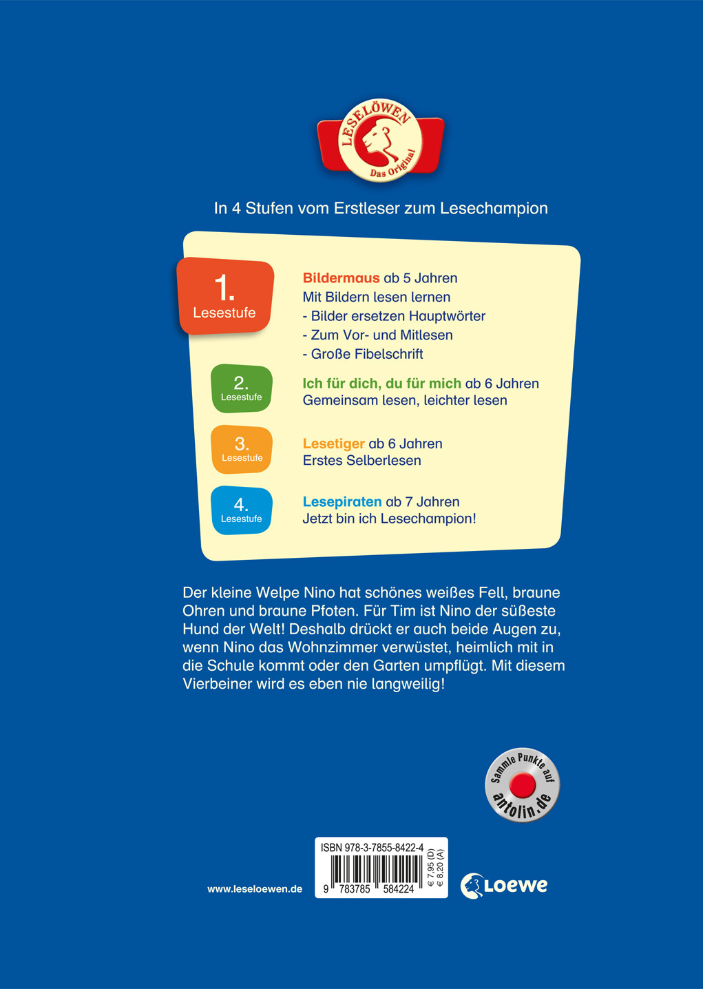 Loewe Bildermaus Geschichten vom kleinen Welpen Der kleine Welpe Nino hat schönes weißes Fell, braune Ohren und braune Pfoten. Für Tim ist Nino der süßeste Hund der Welt ! Deshalb drückt er auch beide Augen zu, wenn Nino das Wohnzimmer verwüstet, heimlich mit ...