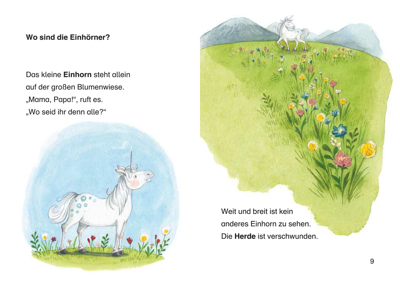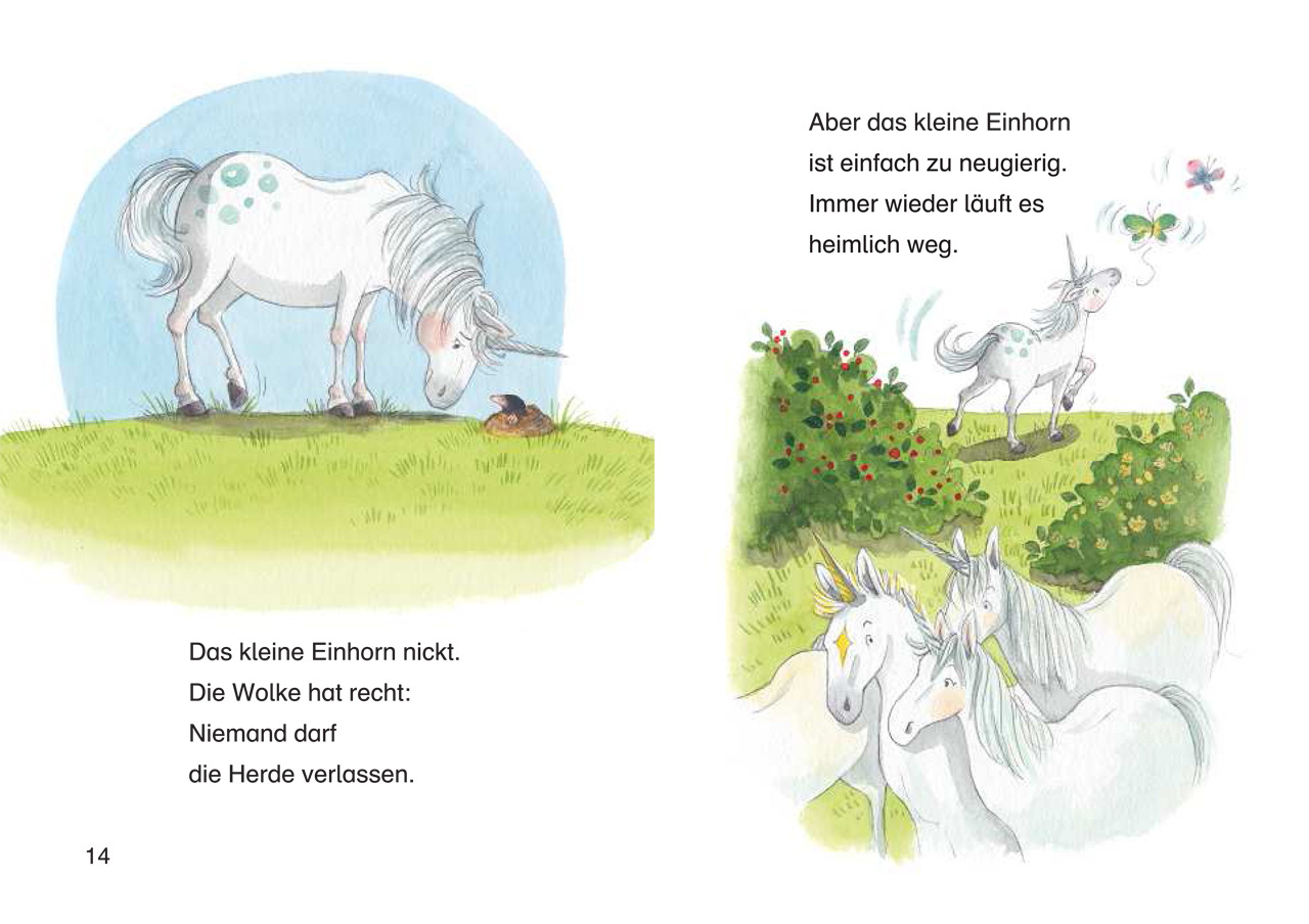 mit Spotlack und Stickerbogen Das kleine Einhorn ist sehr neugierig und will alles erkunden doch plötzlich steht es ganz allein auf der Wiese. Seine Herde ist weg! Schnell macht das Einhorn sich auf die Suche und begegnet dabei einem funkelnden Stern, der vom ...