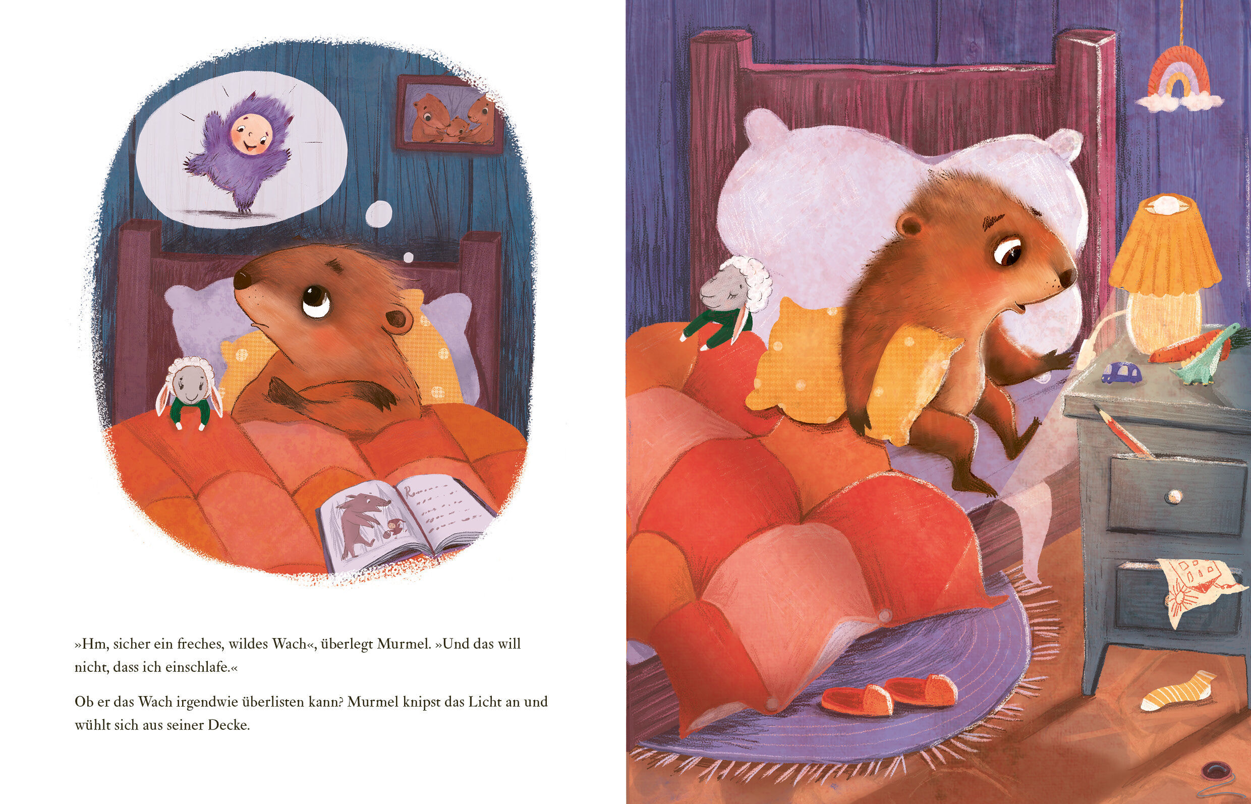 Das wilde Wach gibt keine Ruhe! Alle Murmeltierkinder schlafen friedlich in ihren Betten. Nur Murmel ist noch hellwach! Dabei möchte er ja gerne schlafen, aber das wilde Wach in seinem Bauch gibt einfach keine Ruhe. Nichts hilft: kein Wassertrinken, kein Herum...