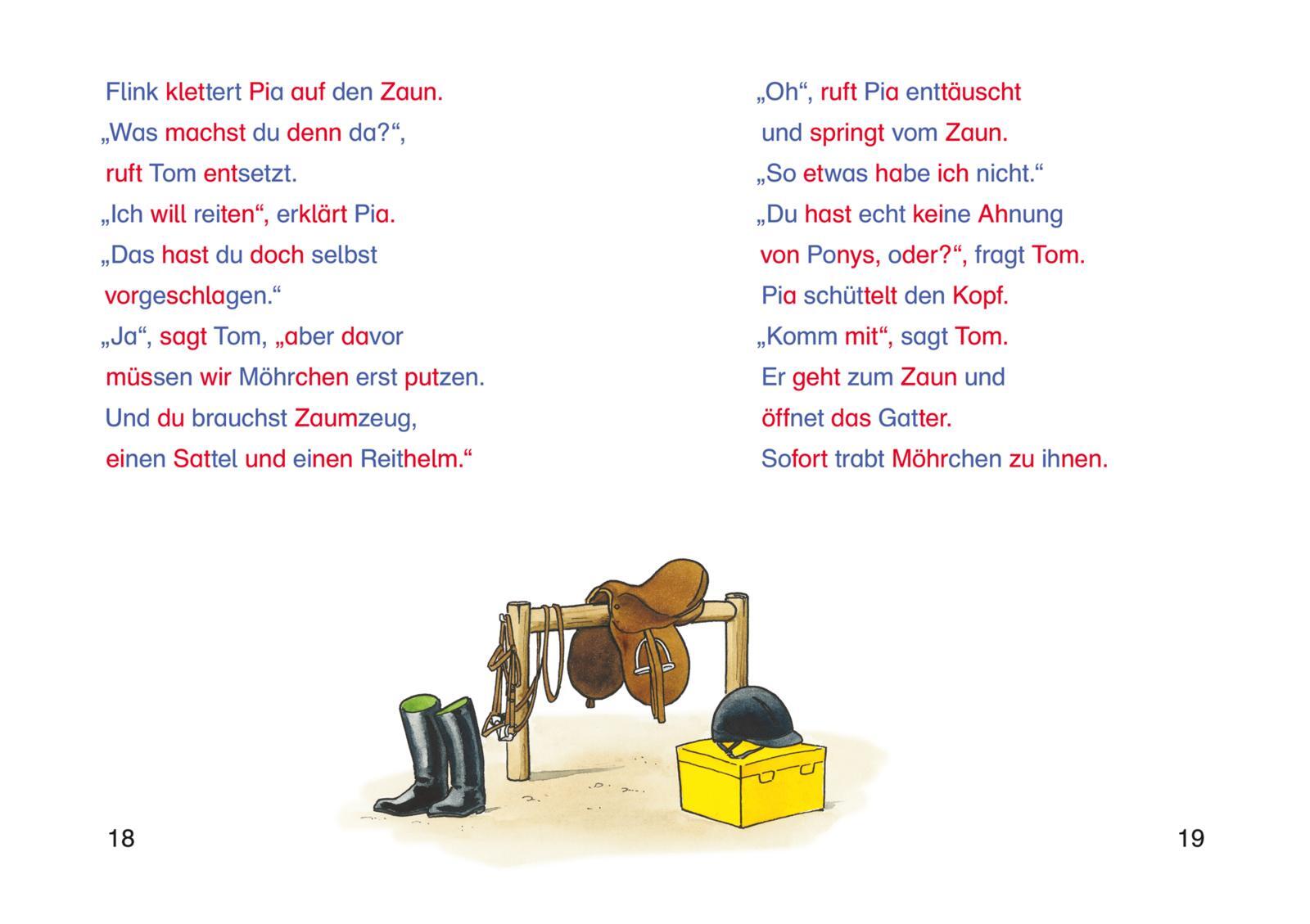 Spannende Erstlesegeschichten für Pferdefans ab der 1. Klasse Tom und sein Pony Möhrchen helfen Pia, ihre ersten Schritte als Reitanfängerin zu meistern. Laura und Sofie erleben die Geburt des Fohlens Schoko und verbringen die Nacht im Stall. Doch nicht immer...