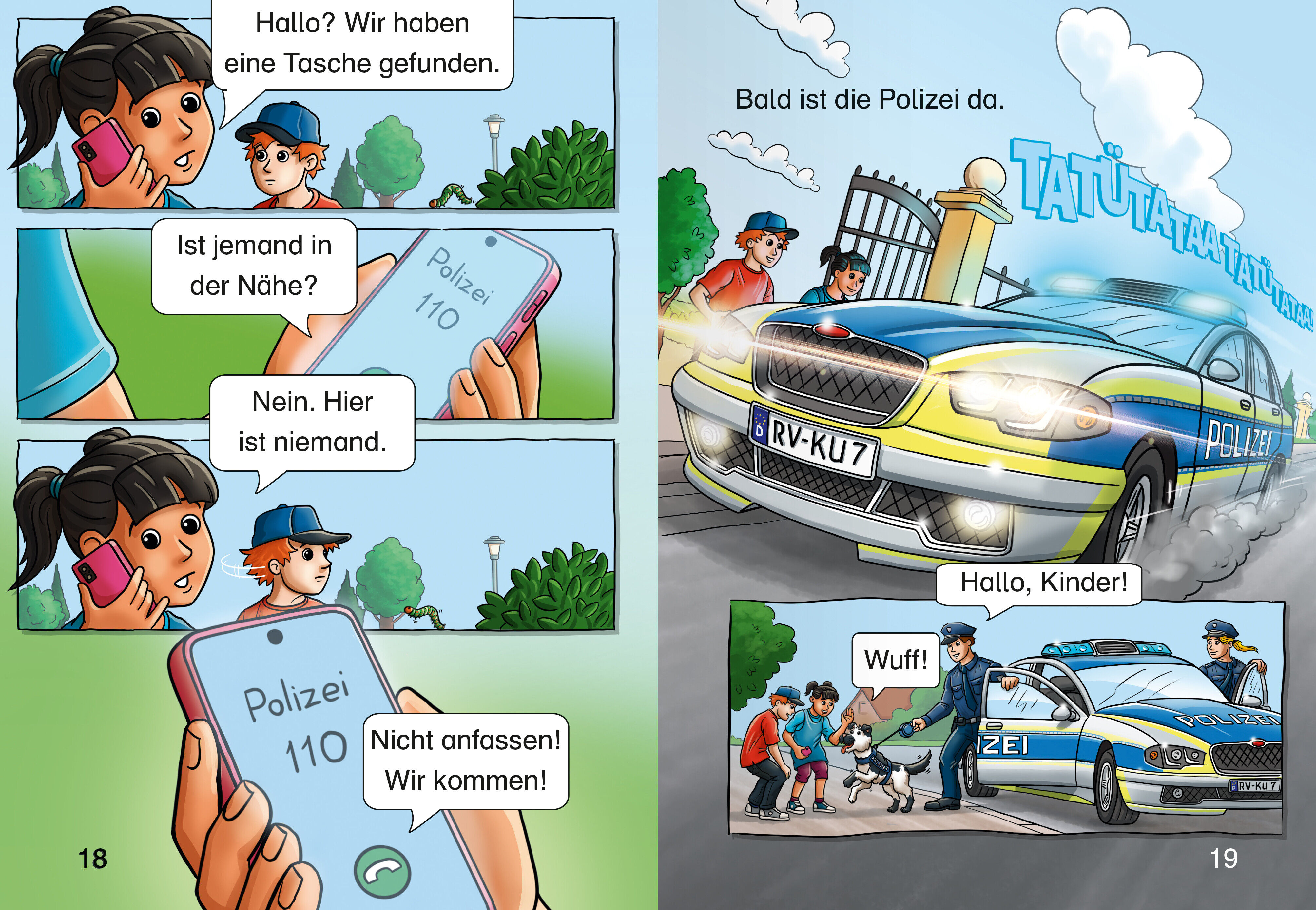 Lesen lernen wie im Flug! Esra und Ben sind im Park. Im Busch findet Esra eine Tasche. Ist da eine Bombe drin? Die Kinder rufen die Polizei. Und die kommt mit Hund und einer Polizei-Ratte! Eine spannende Polizeigeschichte für absolute Leseanfänger. Lesen lerne...
