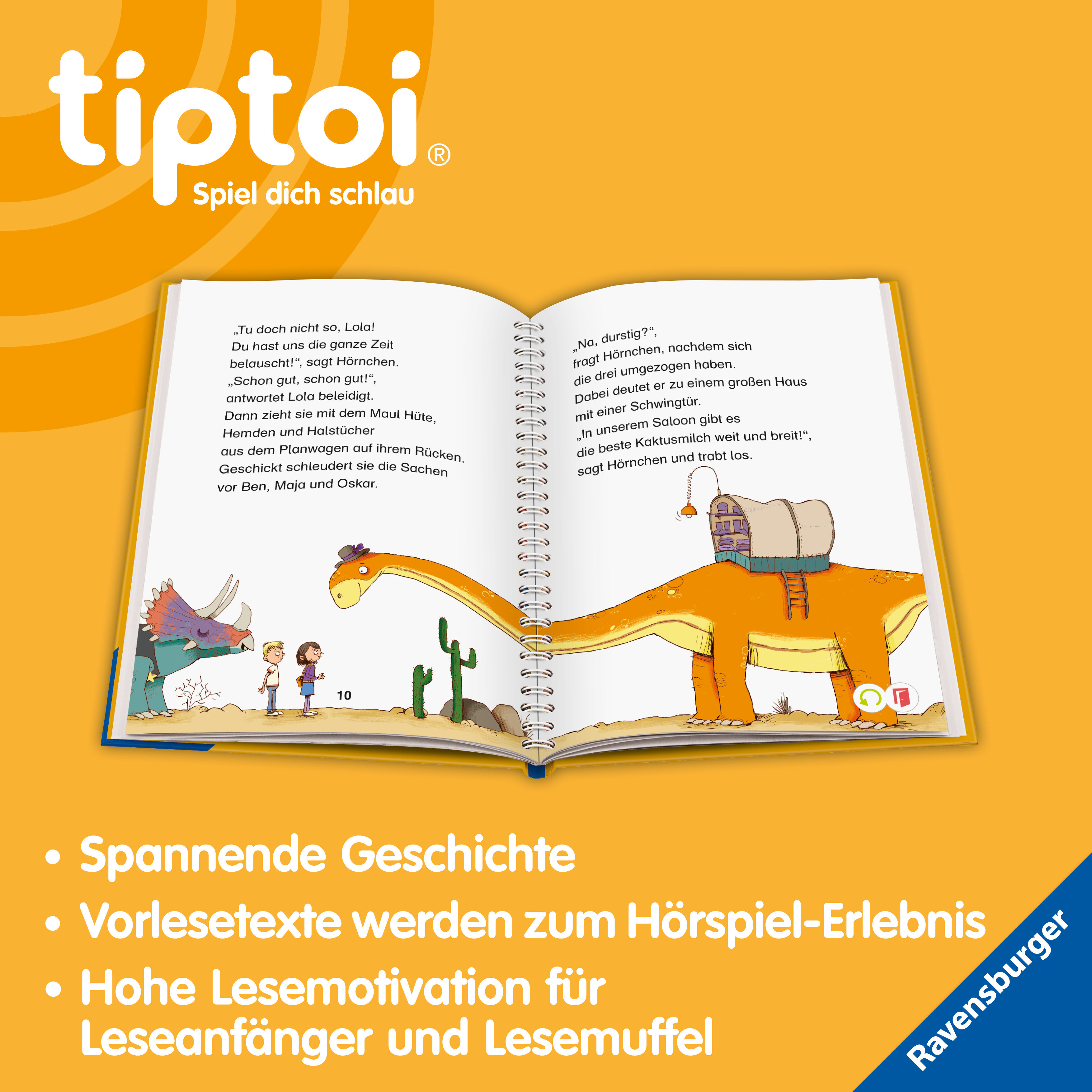 Lies selbst ein Stück und hör ein Hörspiel! Maja und Ben entdecken eine Western-Stadt voller Dinosaurier: Der Triceratops-Sheriff hat Mühe, die Dino-Banditen in den Griff zu bekommen. Und außerdem muss er dringend Gold finden! Können die Geschwister ihm helfen...