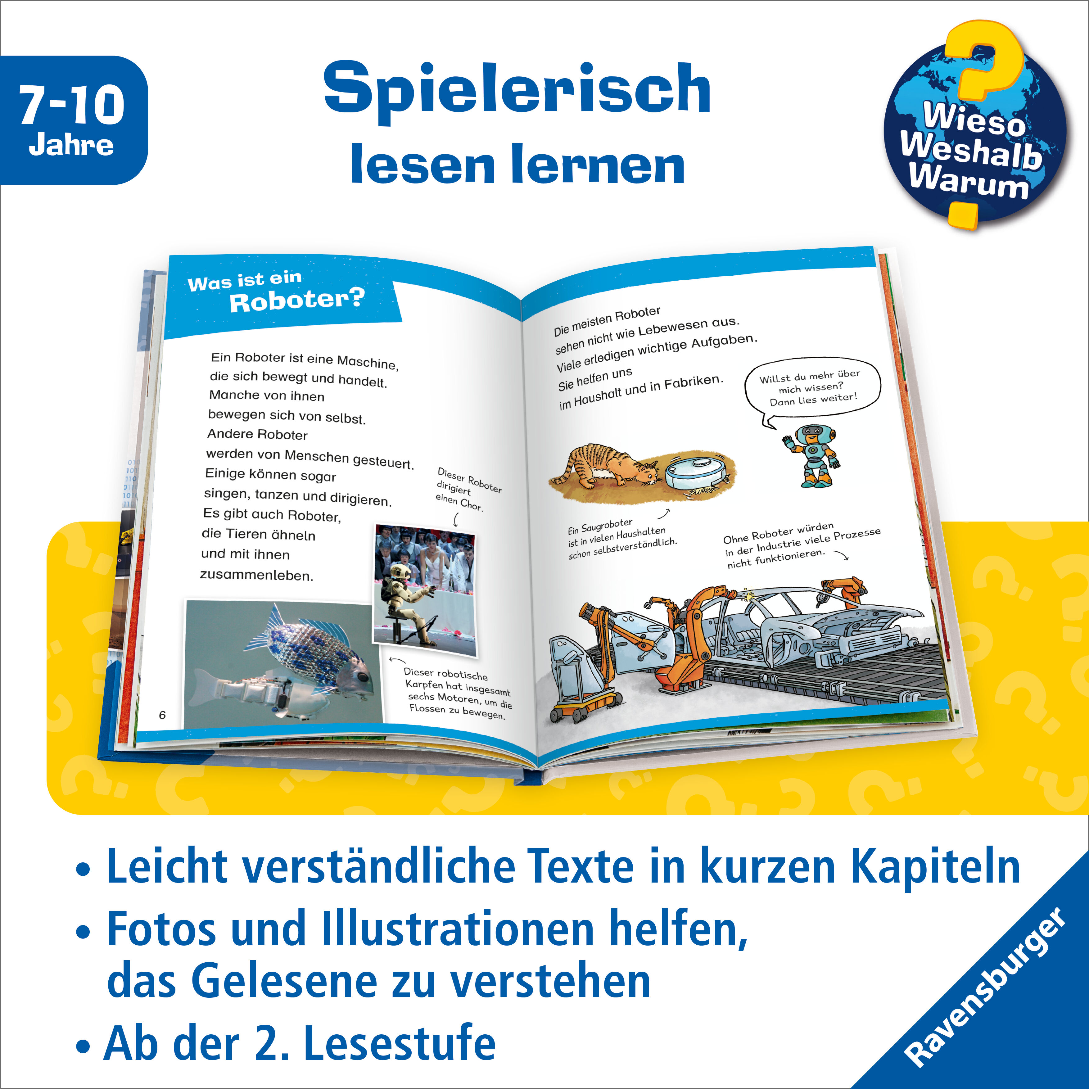 In der Fabrikhalle, zu Hause oder auf dem Mars überall kommen Roboter zum Einsatz Wie bewegt sich ein Roboter? Was bedeutet Künstliche Intelligenz? Welche Roboter werden in der Wüste getestet? All das finden kleine Leserinnen und Leser hier Zeile für Zeile sel...
