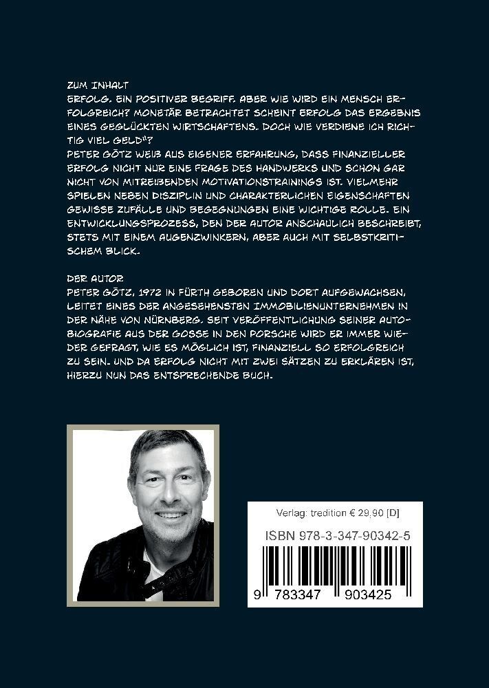 Erfolg. Ein positiver Begriff. Aber wie wird ein Mensch erfolgreich? Monetär betrachtet scheint Erfolg das Ergebnis eines geglückten Wirtschaftens. Doch wie verdiene ich richtig viel Geld? Peter Götz weiß aus eigener Erfahrung, dass finanzieller Erfolg nicht n...