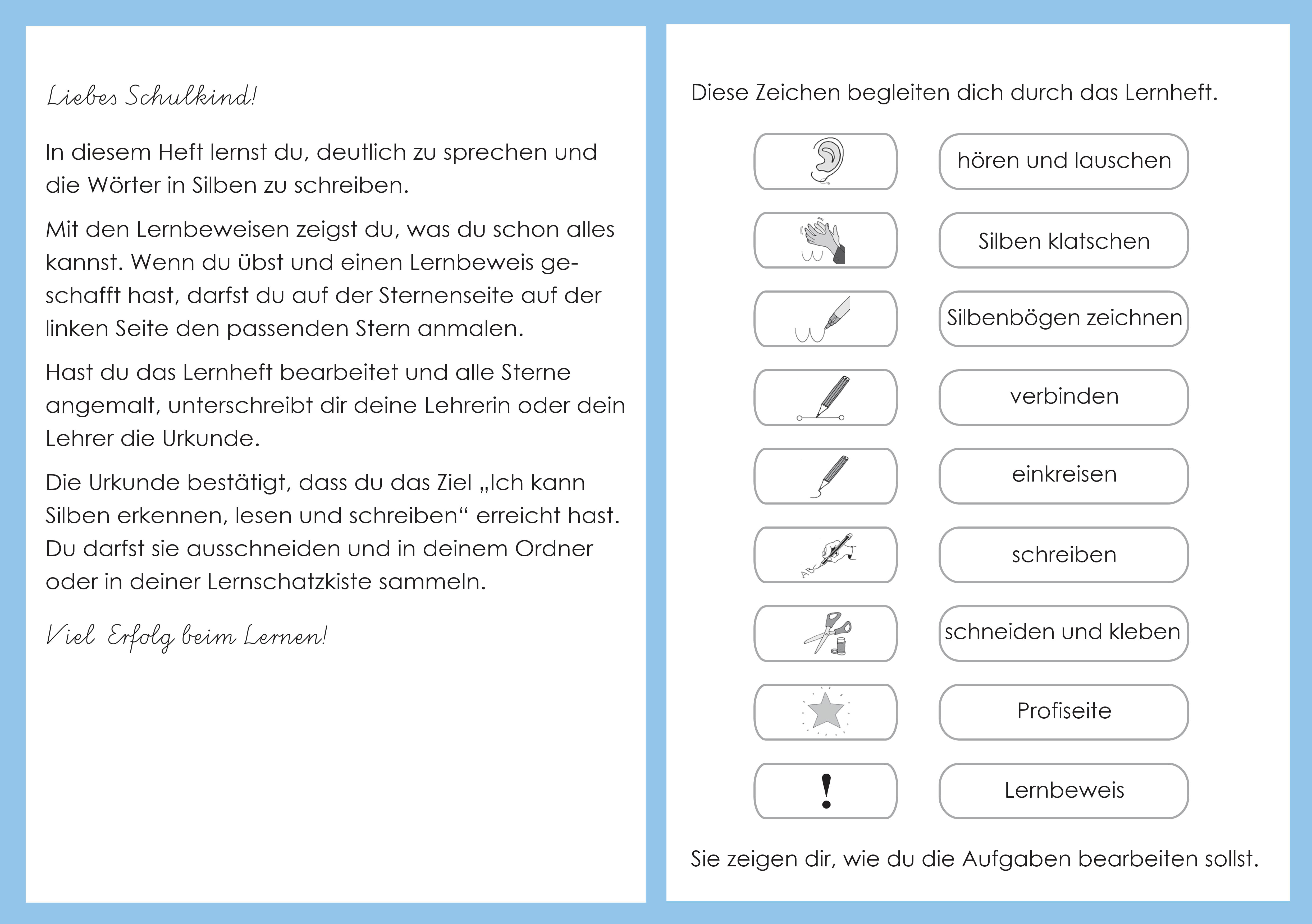 Lernziel: Ich kann Silben erkennen, lesen und schreiben. Die auditive Analyse und das Silbensegmentieren sind wichtige Schritte zum Schriftspracherwerb. Je nach individueller Sprach- und Lesekompetenz können die Seiten selbstgesteuert und selbstständig bearbe...