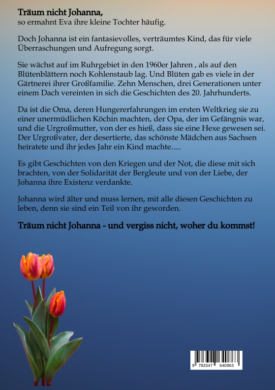 Träum nicht Johanna, so ermahnt Eva ihre kleine Tochter ständig. Doch Johanna ist ein fantasievolles, verträumtes Kind, das für viele Überraschungen und Aufregung sorgt. Sie wächst auf im Ruhrgebiet, als auf den Blütenblätter noch Kohestaub lag. Und Blüten gab...