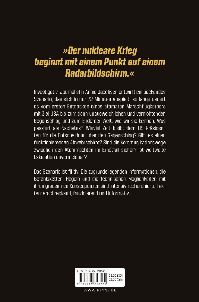 Der nukleare Krieg beginnt mit einem Punkt auf einem Radarbildschirm. Nominiert für den Baillie Gifford Prize 2024 Investigativ-Journalistin Annie Jacobsen entwirft ein Szenario von dreimal 24 Minuten: So lange dauert es vom ersten Entdecken eines atomaren Mar...