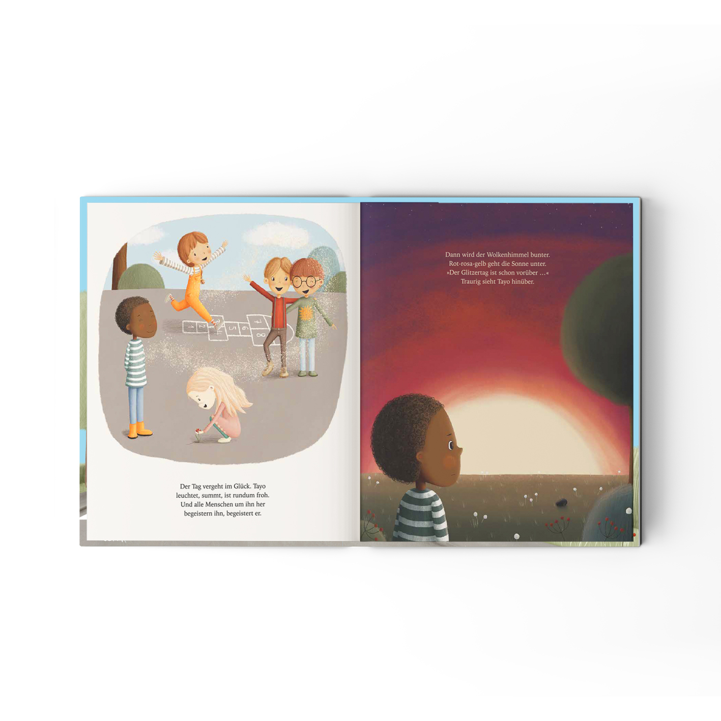 Ein glitzernder Sonnenstrahl weckt Tayo an diesem Morgen und er weiß sofort: Heute ist ein Glitzertag! Heute kann er alles schaffen! Dieses Gefühl begleitet ihn durch den Tag und nicht nur, dass ihm wirklich fast alles gelingt, er kann auch andere damit anstec...