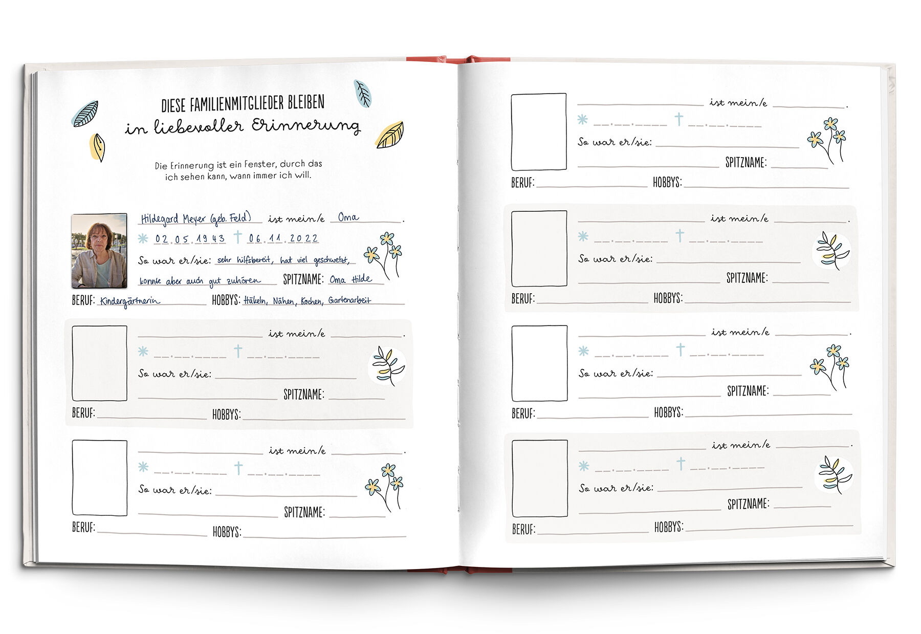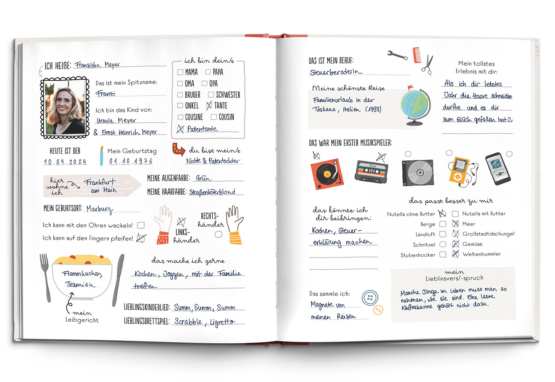 Dieses Familienbuch entlockt bis zu 30 Familienmitgliedern interessante Details und besondere Erinnerungen aus ihrem Leben. Was Oma Ursulas schönste Reise war oder was Onkel Markus einem beibringen kann, wird festgehalten. Einem klassischen Freundebuch nachemp...