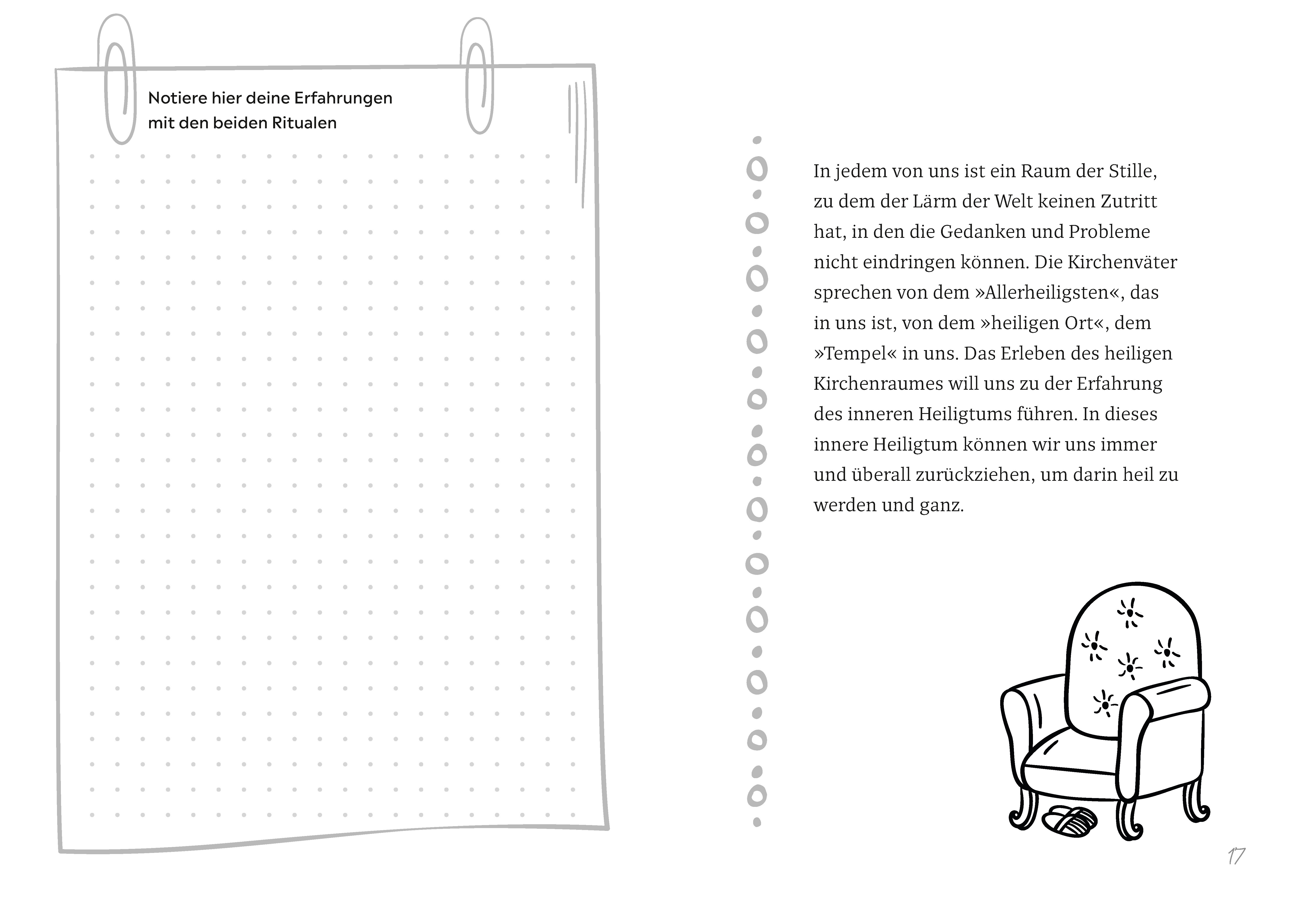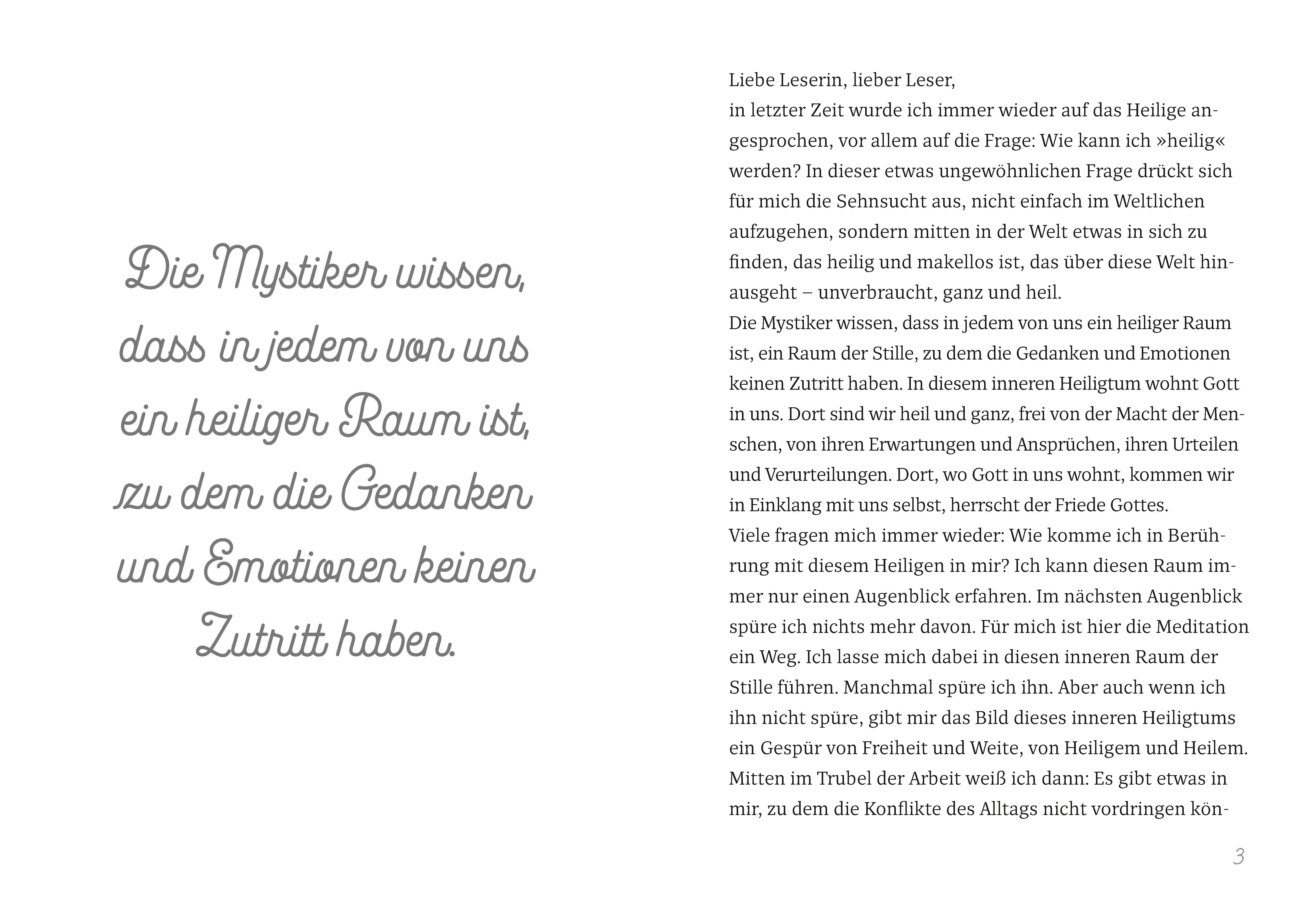 In uns allen gibt es einen heiligen Raum, zu dem Gedanken und Emotionen keinen Zugang haben. Dort sind wir ganz und heil, frei von der Macht der Menschen, von ihren Erwartungen und Ansprüchen, von ihren Verurteilungen und Urteilen. Hier kommen wir in Einklang ...