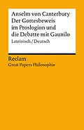 Anselms Beweis der Existenz Gottes gehört zu den berühmtesten Argumenten der Philosophiegeschichte. Bis heute spaltet es die Geister. Der Band bietet die Beweiskapitel und die von Anselm der Schrift angefügte Debatte mit einem zeitgenössischen Kritiker (Gauni...