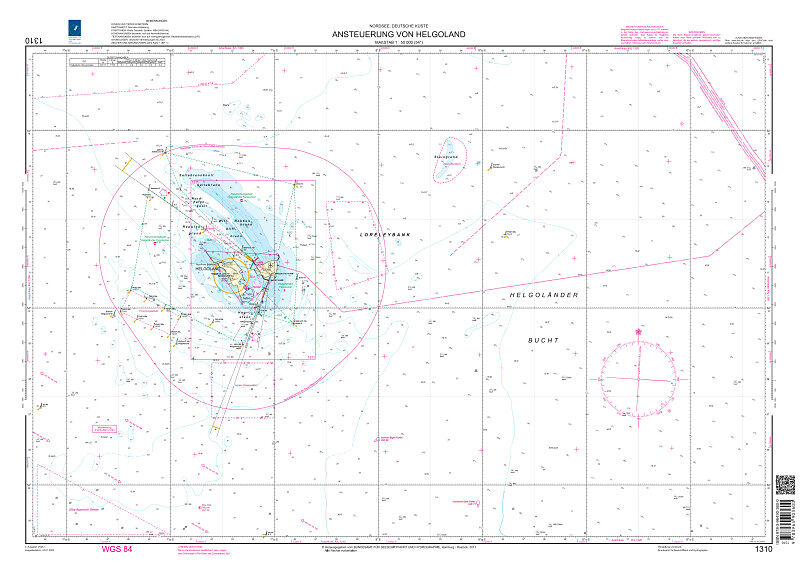 Amtliche deutsche Seekarte des Bundesamtes für Seeschifffahrt und Hydrographie für den Bereich der Nordsee und Helgoland.