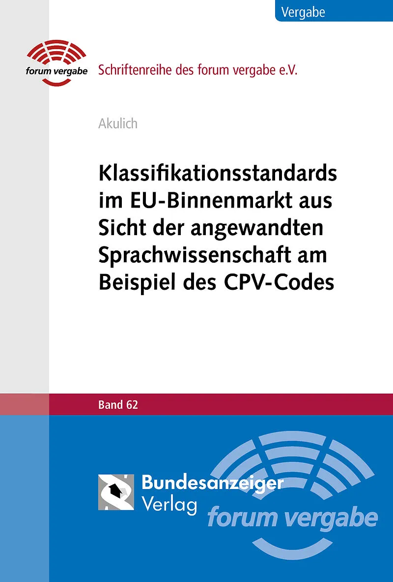 Einziger Titel zum CPV-Code! Der vorliegende Titel beleuchtet das Thema CPV-Code. Dem korrekten Einsatz des CPV-Codes kommt eine enorme wirtschaftliche und unter den Gesichtspunkten der Transparenz und Korruptionsprävention auch politische Bedeutung zu. In dem...