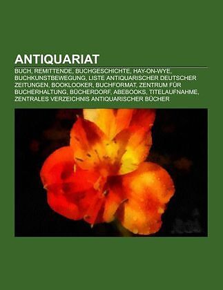 Quelle: Wikipedia. Seiten: 34. Kapitel: Buch, Remittende, Buchgeschichte, Hay-on-Wye, Buchkunstbewegung, Liste antiquarischer deutscher Zeitungen, Booklooker, Buchformat, Zentrum für Bucherhaltung, Bücherdorf, AbeBooks, Titelaufnahme, Zentrales Verzeichnis Ant...