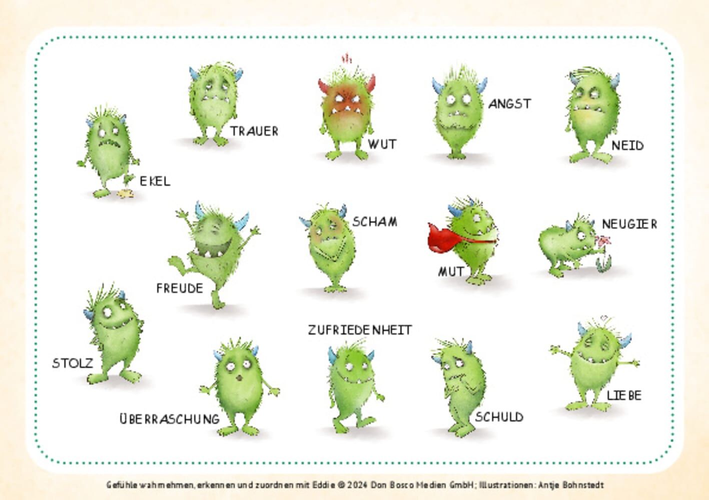Wie fühle ich mich? Impulskarten, um über Gefühle und Emotionen sprechen zu üben. Eddie zeigt es vor! Spielerisch emotionale Kompetenz bei Kindern fördern Gefühle zeigen lernen: Wann hast du dich schon wie Eddie gefühlt? Wenn Monster Eddie traurig, fröhlich od...