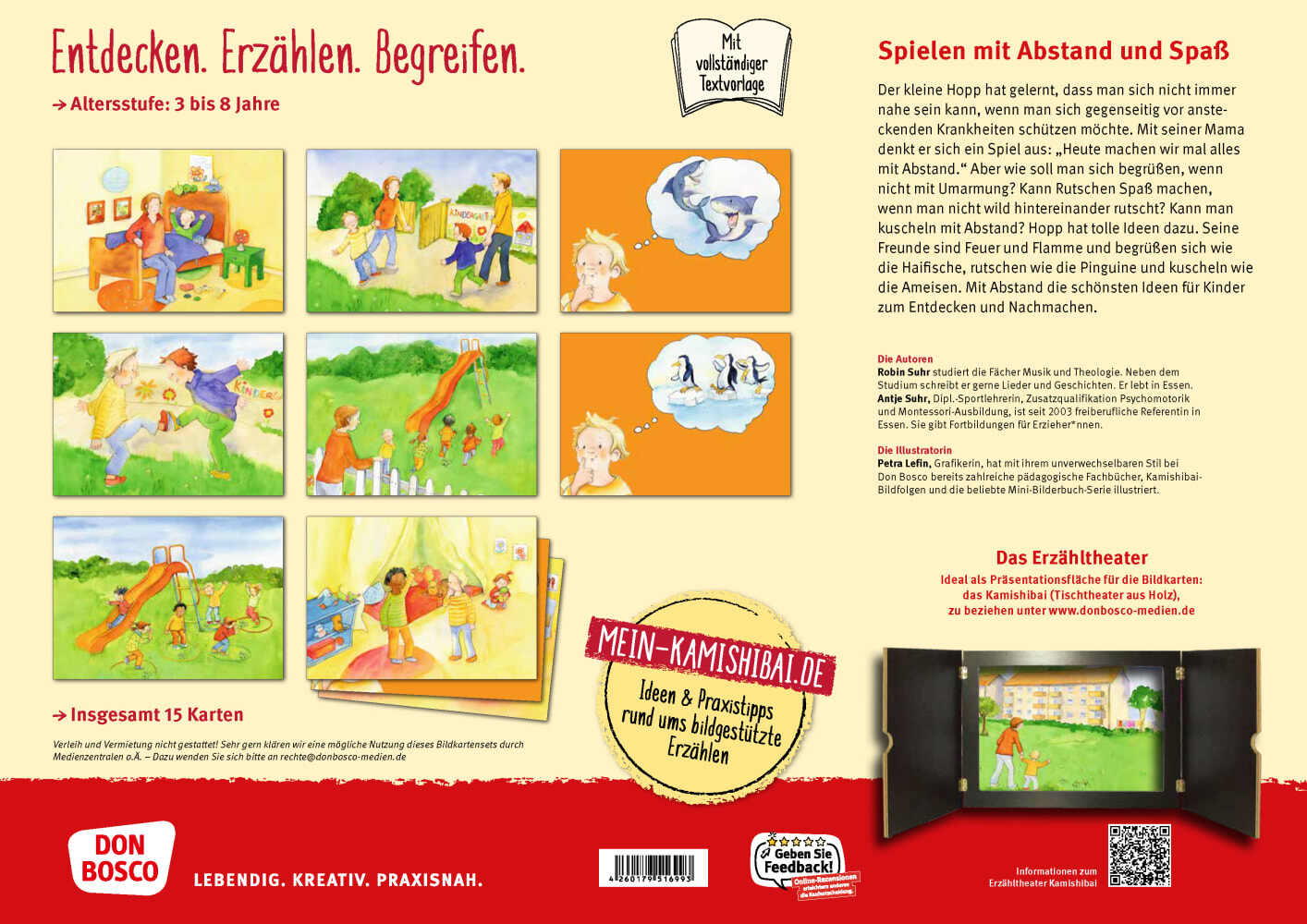 Warum wir heute Abstand halten müssen. Und: Wie wir trotzdem kuscheln können Kamishibai-Bildkarten mit einer Geschichte zu Corona oder ansteckenden Kinderkrankheiten. Abstand halten und sich trotzdem nahe sein - Hopp entdeckt, wie das klappt! Begrüßen, spielen...