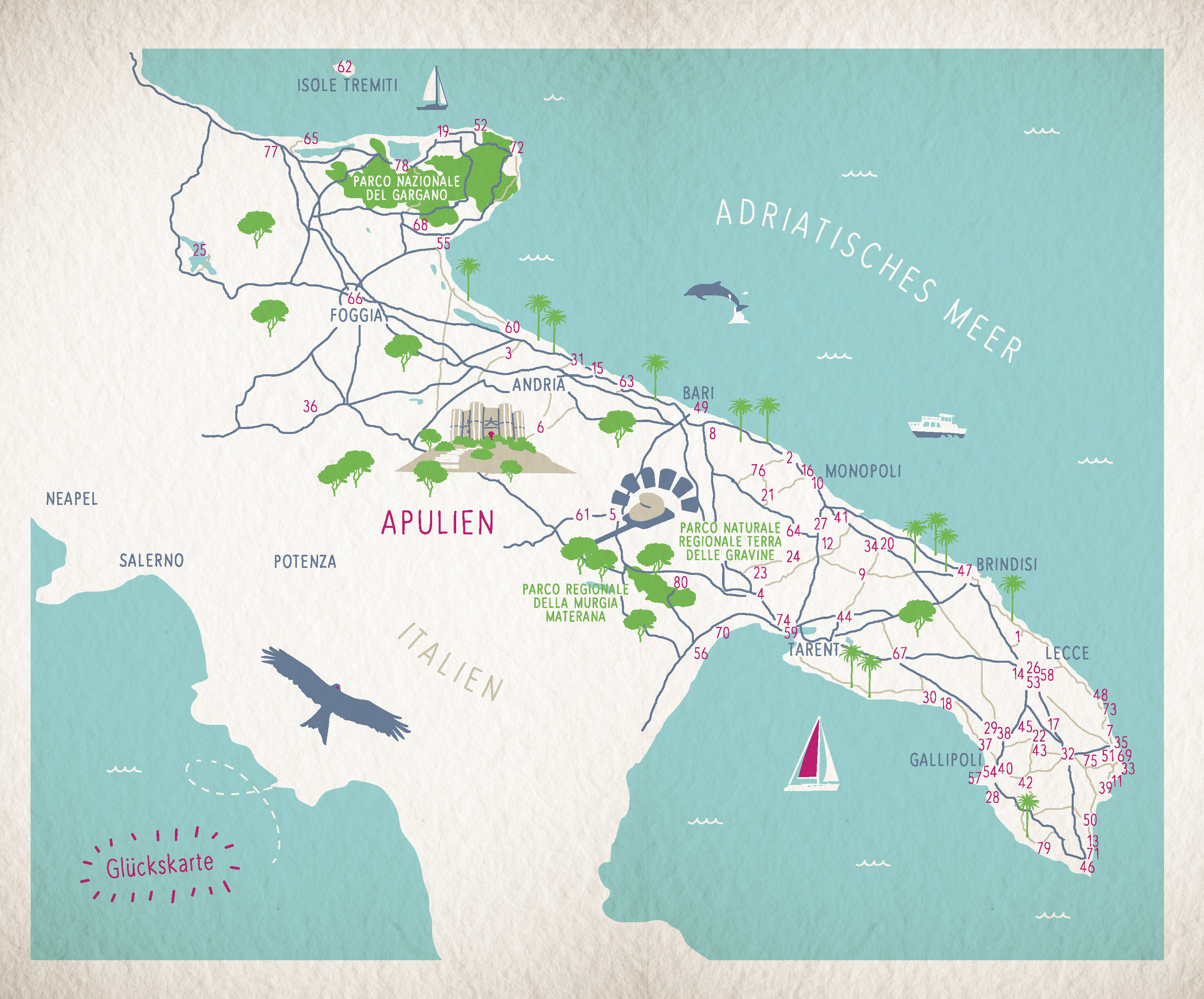 Traumhafte Strände, magische Grotten und der größte Canyon Europas: Italiens Stiefelabsatz ist ein wahres Naturparadies. Umarmt von zwei Meeren zeigt Apulien auch seine historische und kreative Seite: Antike Stätten und traditionelles Kunsthandwerk locken zu s...