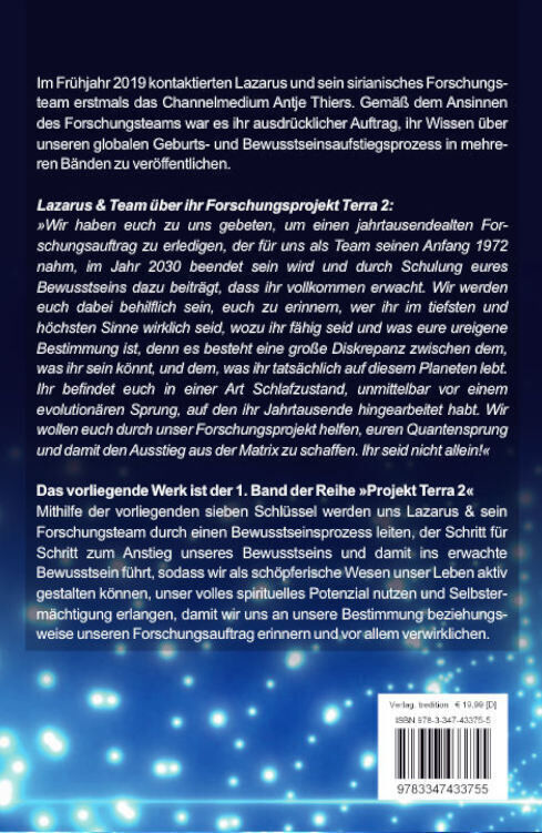Im Frühjahr 2019 kontaktierten Lazarus und sein sirianisches Forschungsteam erstmals das Channelmedium Antje Thiers. Gemäß dem Ansinnen des Forschungsteams war es ihr ausdrücklicher Auftrag, ihr Wissen über unseren globalen Geburts- und Bewusstseinsaufstiegspr...