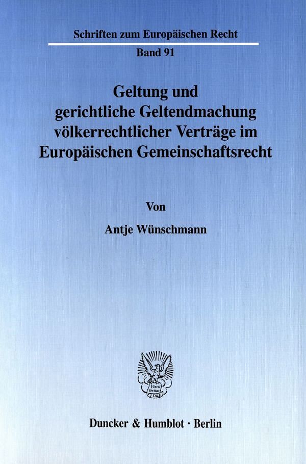 Die Autorin untersucht, in welchem Umfang völkerrechtliche Verträge, an denen die Europäische Gemeinschaft beteiligt ist, im innergemeinschaftlichen Recht gelten und anwendbar sind. Sie begründet die Einführung völkerrechtlicher Verträge in die Gemeinschaftsre...