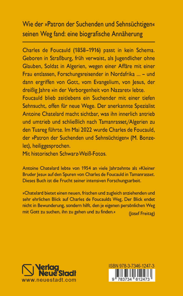 »Ich möchte dem heiligen Charles de Foucauld danken, denn seine Spiritualität hat mir während meines Theologiestudiums, einer Zeit der Reifung und auch der Krise, sehr gut getan. (...) Er hat mir sehr geholfen, Krisen zu überwinden und einen Weg des christlich...