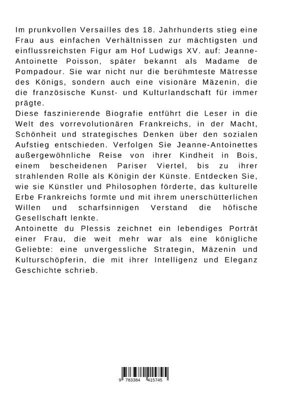 Im prunkvollen Versailles des 18. Jahrhunderts stieg eine Frau aus einfachen Verhältnissen zur mächtigsten und einflussreichsten Figur am Hof Ludwigs XV. auf: Jeanne-Antoinette Poisson, später bekannt als Madame de Pompadour. Sie war nicht nur die berühmteste ...
