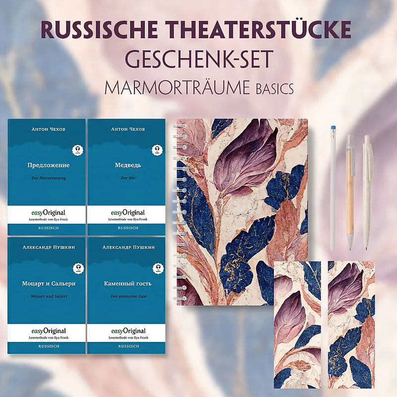 Russische Theaterstücke Geschenkset - 4 Bücher (mit Audio-Online) + Marmorträume Schreibset Basics