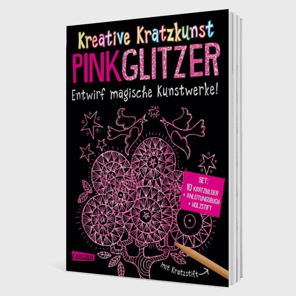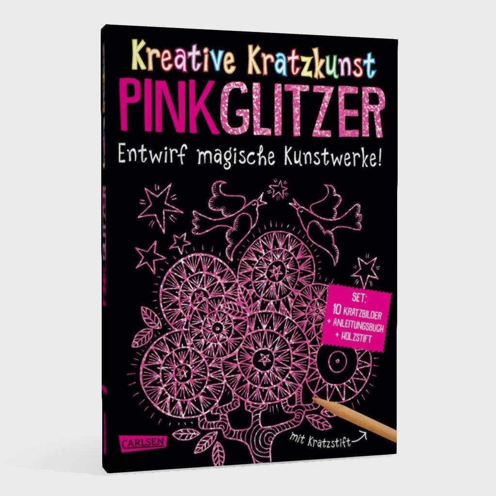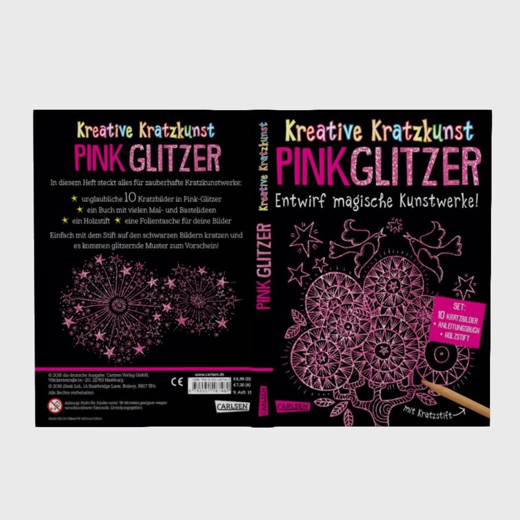 In diesem Set steckt alles für zauberhafte Kratz-Kunstwerke: unglaubliche 10 Kratzbilder in Pink-Glitzer + ein Buch mit vielen Mal- und Bastelideen + ein Holzstift + eine Folientasche für deine Bilder. Einfach mit den Stift auf den schwarzen Bildern kratzen u...