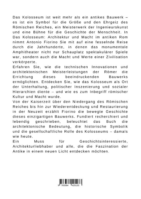 Das Kolosseum ist weit mehr als ein antikes Bauwerk es ist ein Symbol für die Größe und den Ehrgeiz des Römischen Reiches, ein Meisterwerk der Ingenieurskunst und eine Bühne für die Geschichte der Menschheit. In Das Kolosseum: Architektur und Macht im antiken ...